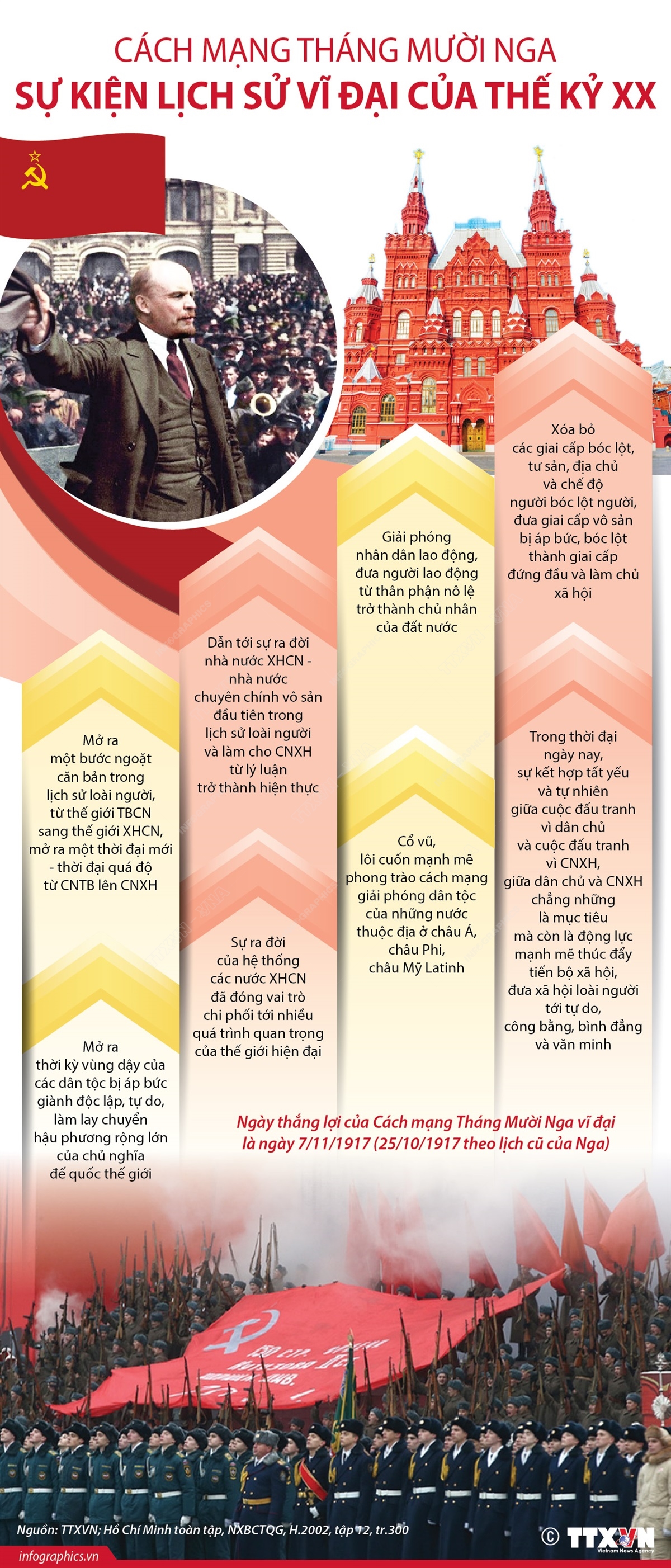 Ngày 7/11/2025 kỷ niệm 108 năm Ngày thắng lợi của Cách mạng Tháng Mười Nga vĩ đại (ngày 7/11/1917 theo lịch cũ nước Nga là ngày 25/10/1917). Đây là cuộc cách mạng vĩ đại nhất của nhân loại trong thế kỷ XX. Trong lịch sử loài người chưa từng có cuộc cách mạng nào có ý nghĩa to lớn và sâu xa như thế. Cách mạng Tháng Mười Nga đã giải phóng nhân dân lao động, đưa người lao động từ thân phận nô lệ trở thành chủ nhân của đất nước.