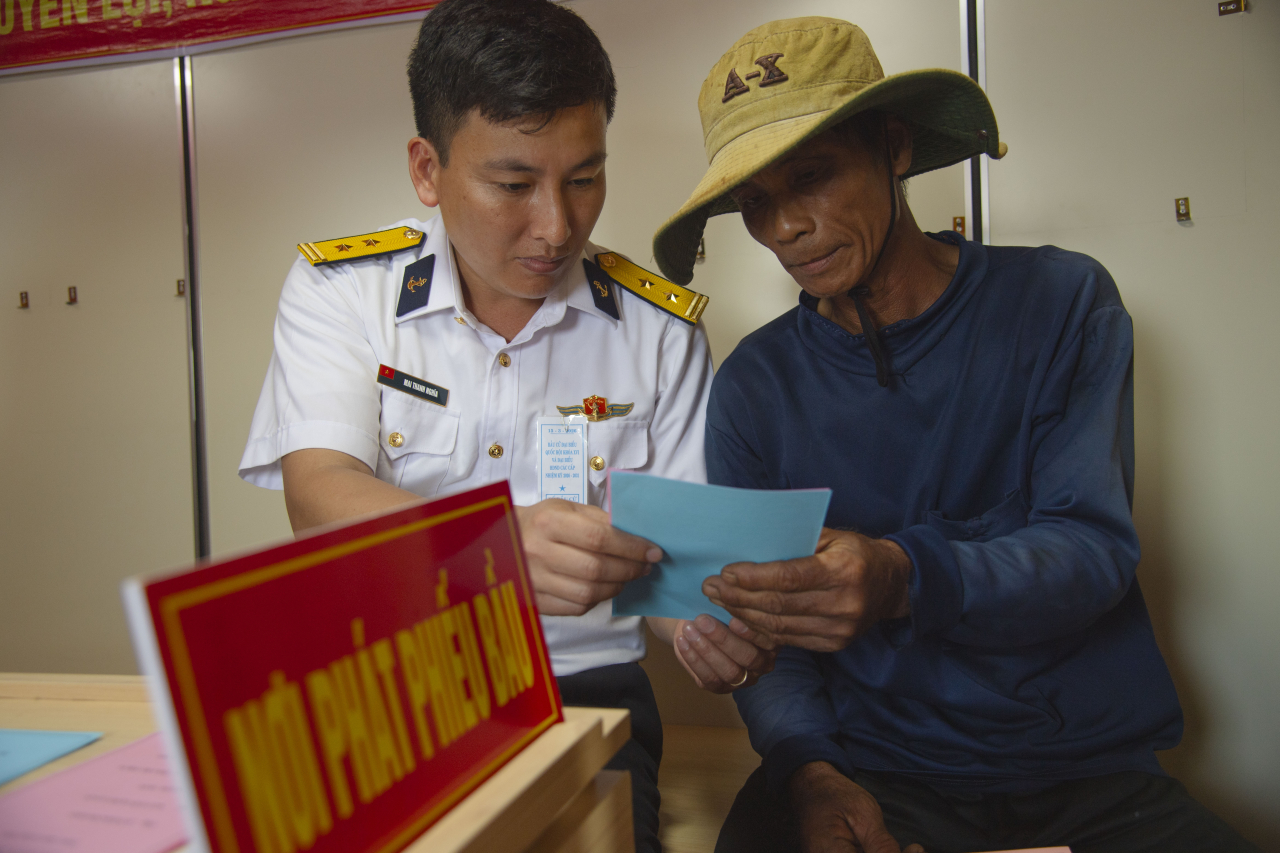 Trong ngày bầu cử sớm, hình ảnh những con tàu Hải quân ngang dọc hải trình đến từng ngư trường truyền thống, tiếp cận từng tàu cá đang hoạt động trên biển, để hỗ trợ ngư dân thực hiện quyền công dân mang ý nghĩa rất đặc biệt.