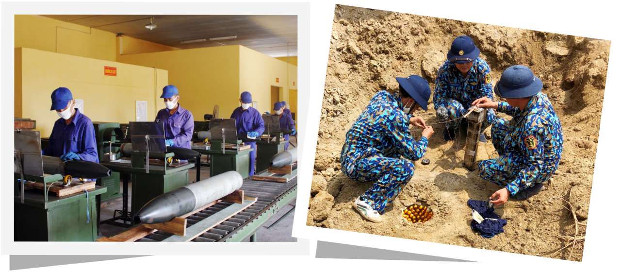 nhận, cấp phát và tổ chức xử lý gần 600 tấn bom đạn cấp 5 nguy hiểm.