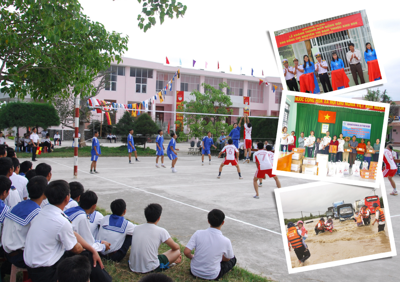 tích cực tham gia giúp dân khắc phục thiên tai, bão lụt, hoả hoạn; xây nhà tình