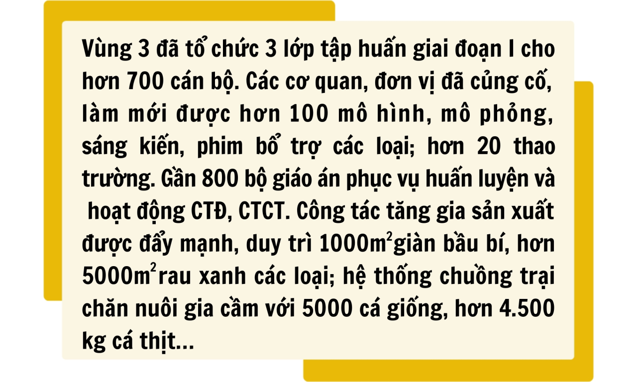 Vùng đã rà soát, kiện toàn đội ngũ cán bộ các cấp; tổ chức các lớp tập huấn, bồi dưỡng chuyên sâu cho cán bộ, các tổ giáo viên đủ nội dung, bảo đảm thời gian, phương pháp, quy trình huấn luyện. Kết quả kiểm tra đánh giá trình độ tổ chức chỉ huy, quản lý, khả năng điều hành huấn luyện của đội ngũ cán bộ được nâng lên, đáp ứng tốt yêu cầu nhiệm vụ.