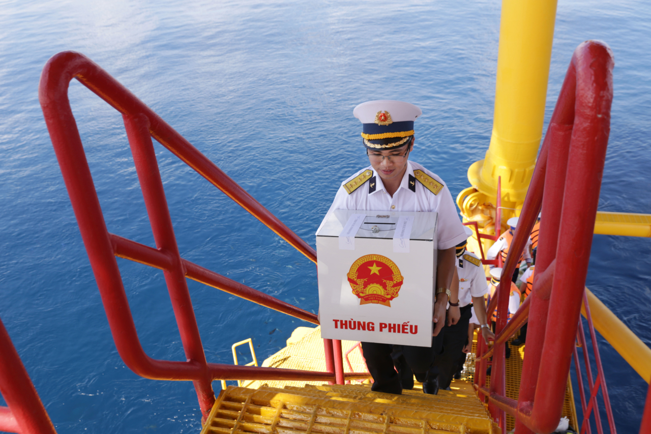 Thùng phiếu được đưa lên nhà giàn DK1 phục vụ bầu cử cho cử tri