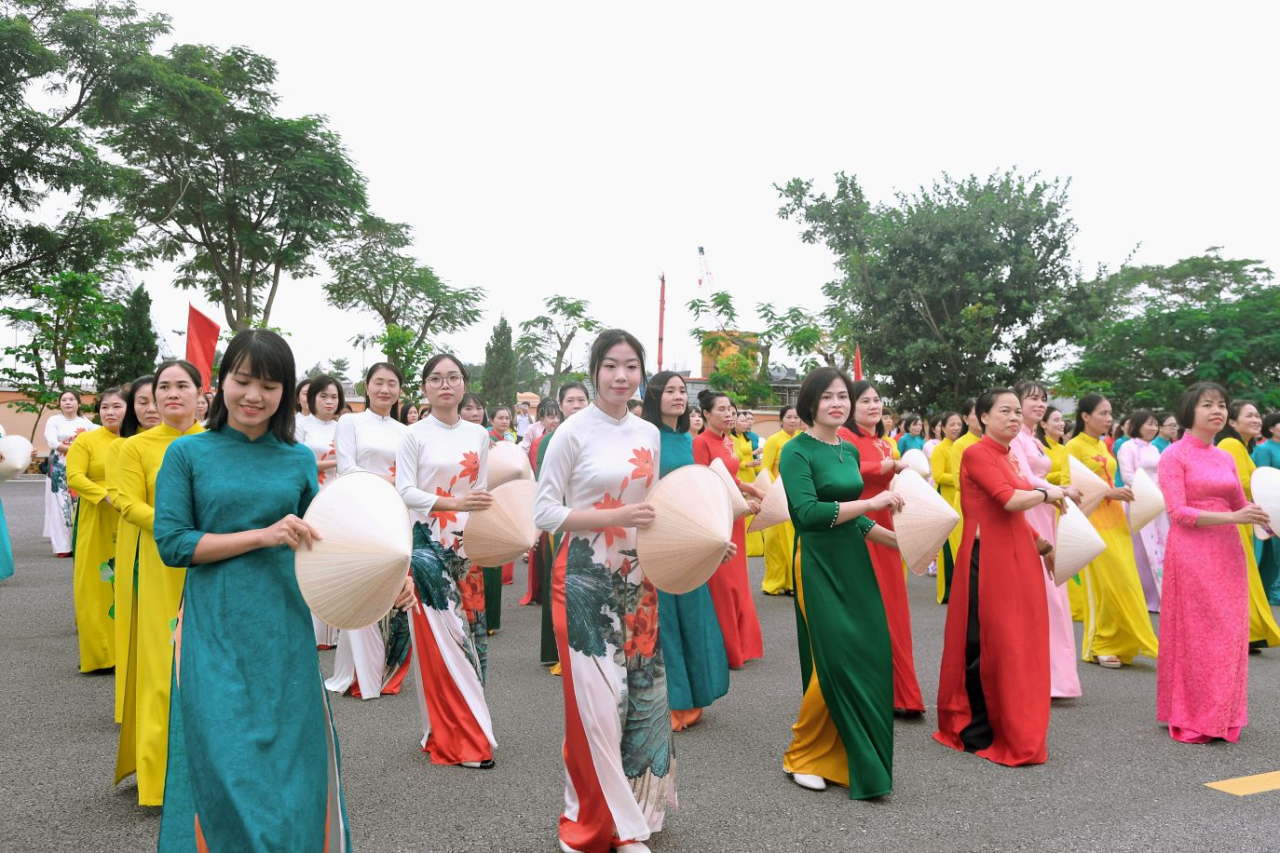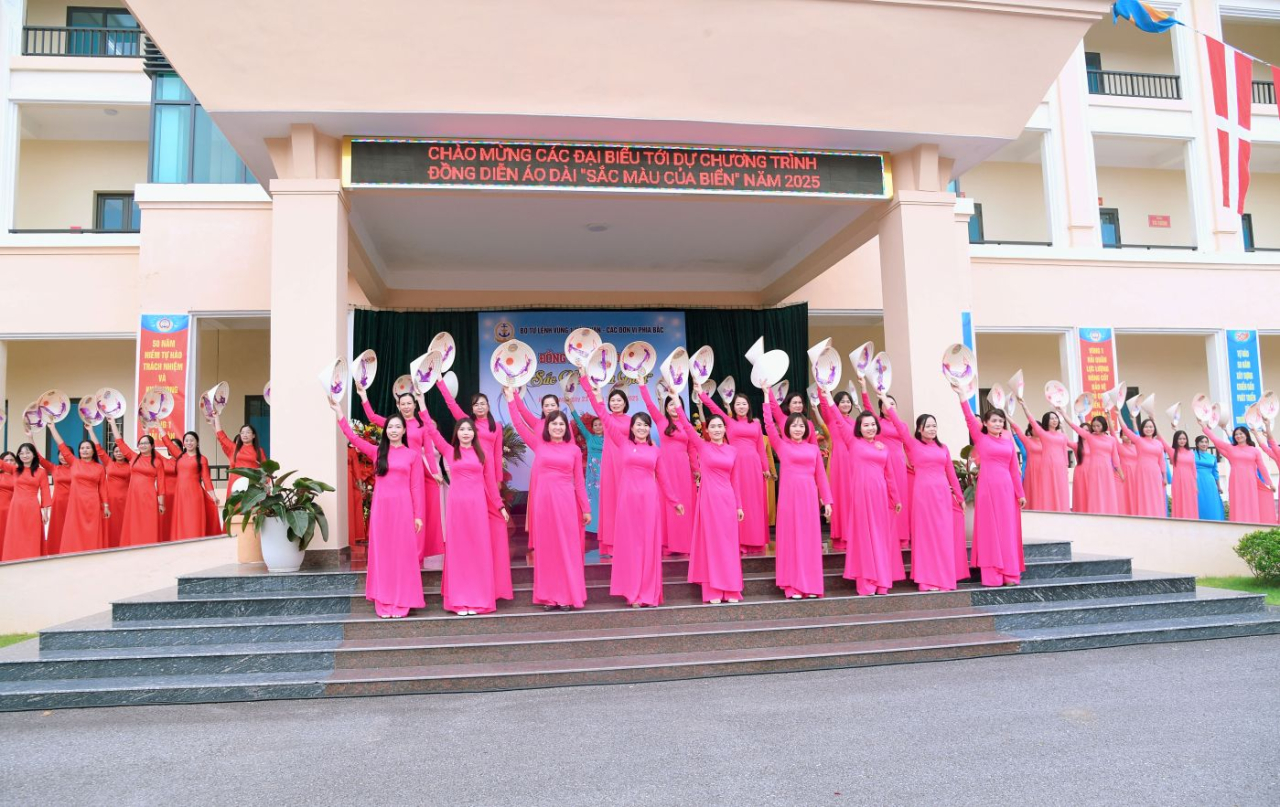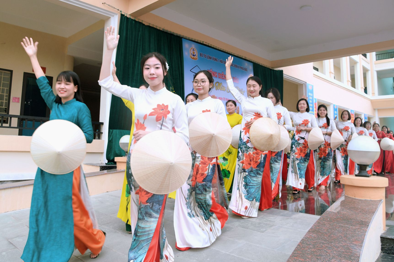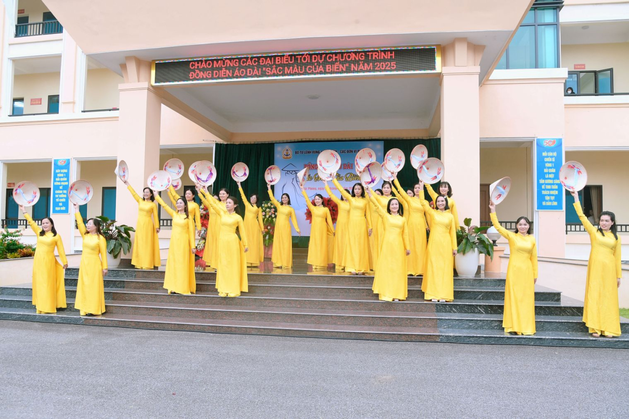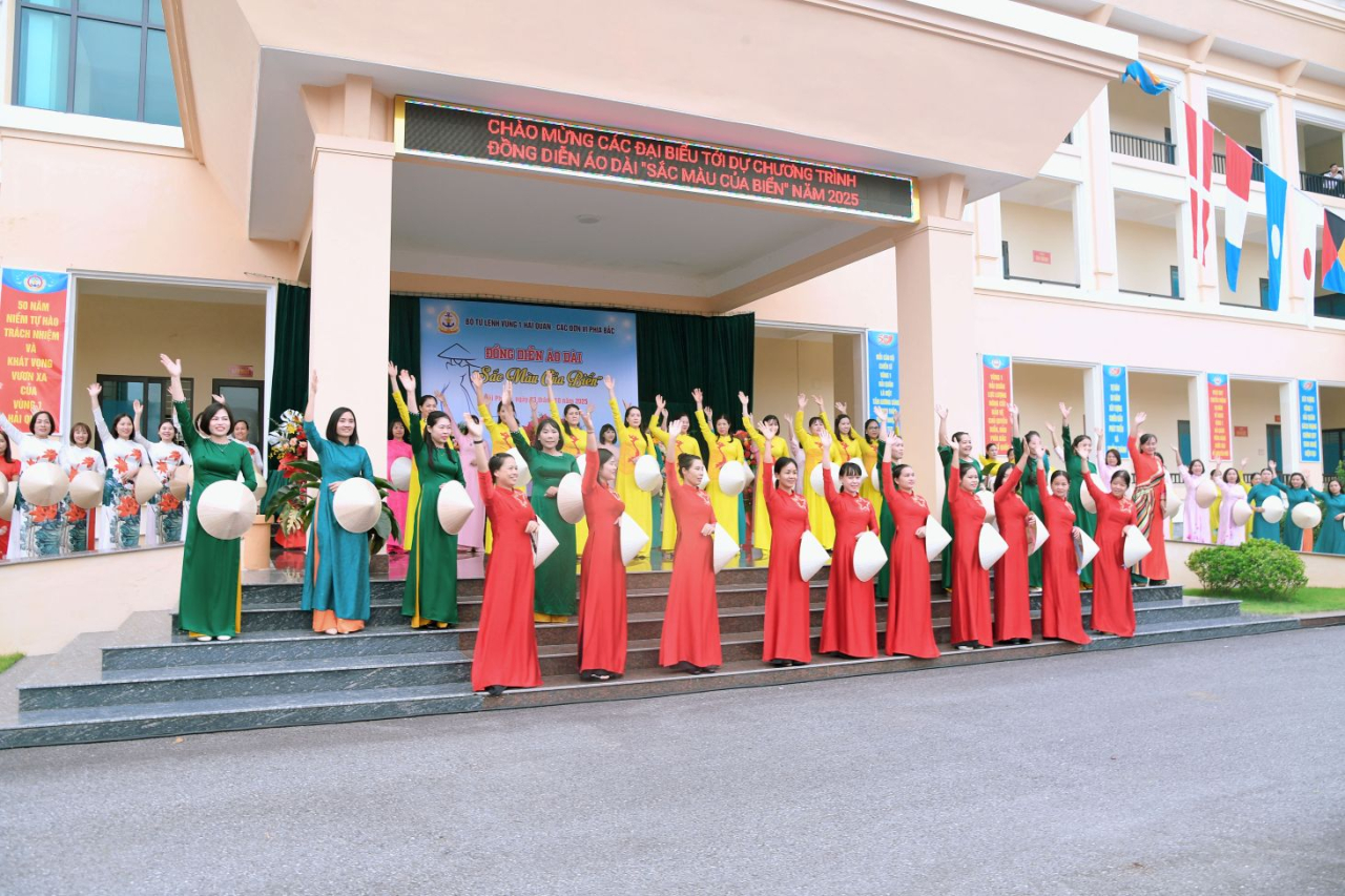 Chương trình thu hút 450 cán bộ, hội viên phụ nữ Vùng 1 và các cơ quan, đơn vị Hải quân khu vực phía Bắc tham gia đồng diễn áo dài truyền thống, tạo nên bức tranh sinh động, rực rỡ sắc màu. Những tà áo dài thướt tha, mềm mại tung bay trong gió thể hiện vẻ đẹp dịu dàng, duyên dáng, tự tin của người phụ nữ Hải quân.