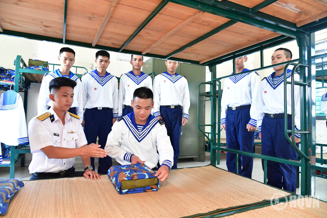 Những ngày đầu làm quen với việc sắp xếp nội vụ, đến nay, việc xếp chăn vuông thành, sắc cạnh đã trở thành thói quen của chiến sĩ mới mỗi khi thức dậy