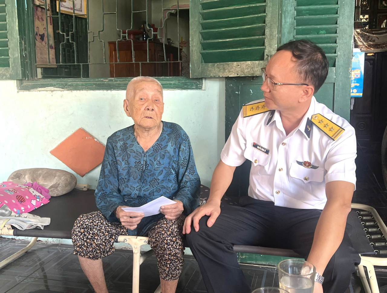 Thượng tá Nguyễn Hùng Vỹ, Phó Chính ủy Trung tâm Bảo đảm Kỹ thuật Vùng 2 thăm, tặng quà gia đình mẹ liệt sĩ Nguyễn Thị Thôi