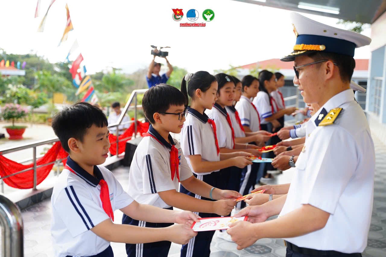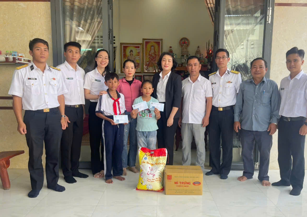 Đoàn cơ sở Lữ đoàn 167 phối hợp với đơn vị kết nghĩa tặng quà các cháu là con ngư dân có hoàn cảnh khó khăn do Lữ đoàn nhận đỡ đầu