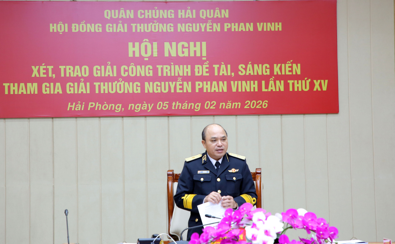 HQ Online - Chiều 5/2, tại Hải Phòng, Hội đồng Giải thưởng Tuổi trẻ sáng tạo Nguyễn Phan Vinh Quân chủng Hải quân tổ chức Hội nghị xét trao giải công trình đề tài, sáng kiến lần thứ XV. Chuẩn Đô đốc Đỗ Văn Yên, Phó Chính ủy Hải quân, Chủ tịch Hội đồng chủ trì.