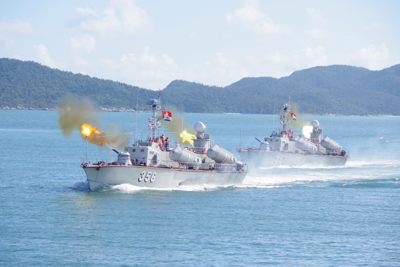 Tàu của Vùng 1 Hải quân huấn luyện, kiểm tra bắn đạn thật trên biển