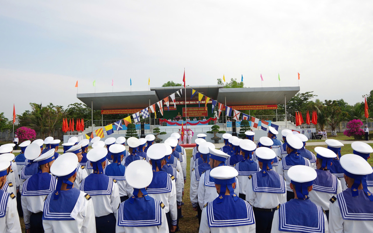 HQ Online - Sáng 27/1, tại xã Long Sơn (TP Hồ Chí Minh), Vùng 2 Hải quân tổ chức Lễ tiễn quân nhân hoàn thành nghĩa vụ quân sự tại ngũ năm 2026. Đại tá Triệu Thanh Tùng, Phó Tư lệnh Vùng dự và chỉ đạo.