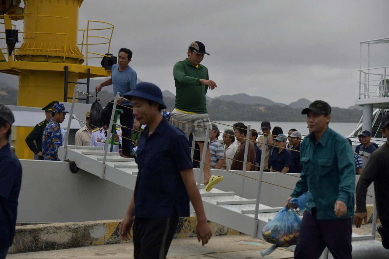 Các ngư dân di chuyển từ Tàu Trường Sa 22 lên cảng