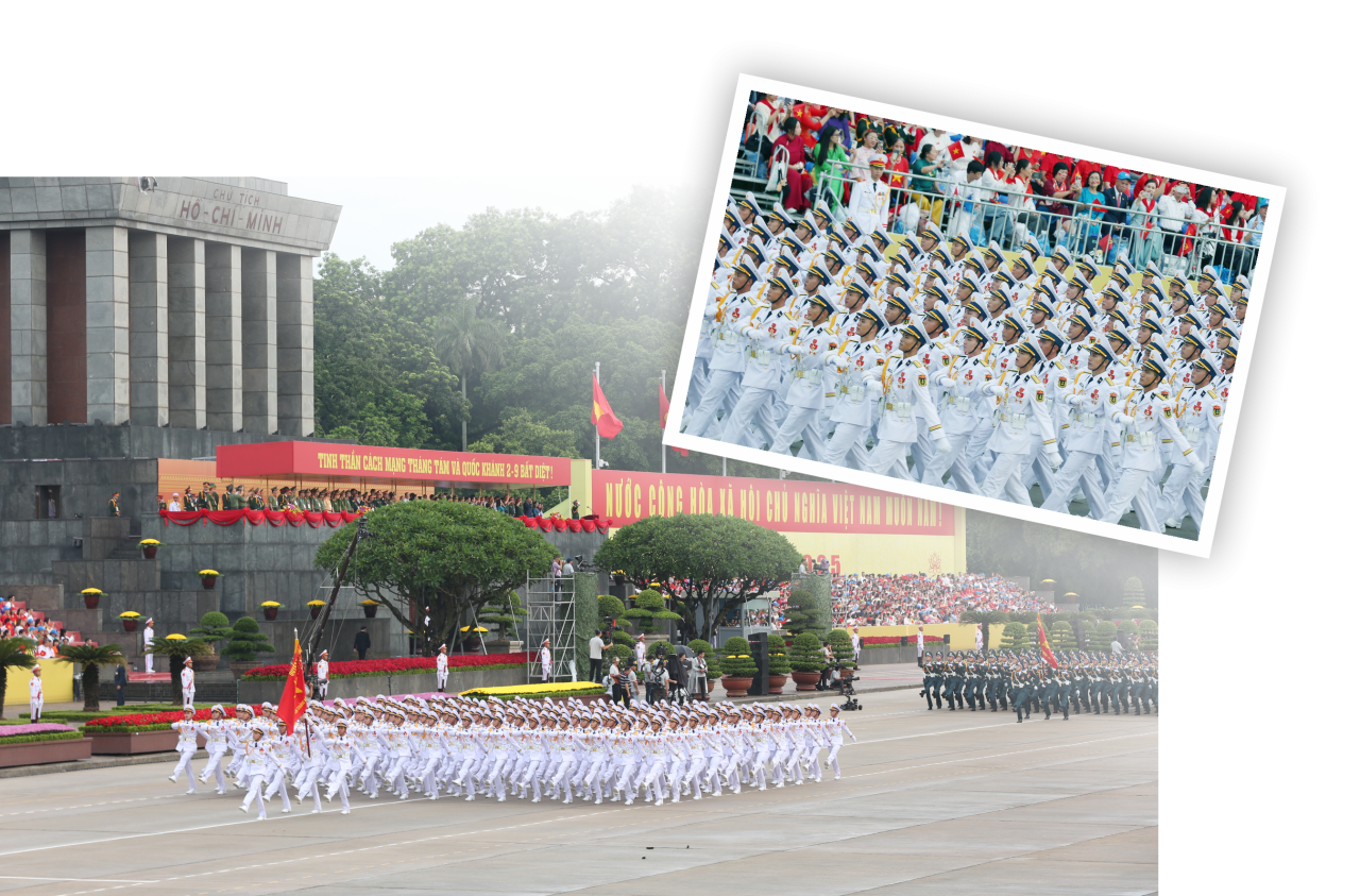 Trên quảng trường lịch sử buổi sáng mùa thu Hà Nội, đội hình của Quân chủng Hải quân tiến qua lễ đài, hàng vạn ánh mắt đồng bào dõi theo, như gửi gắm trọn niềm tin về những người con của biển đang ngày đêm gìn giữ vững chắc biển trời của Tổ quốc. Màu trắng lễ phục Hải quân nổi bật giữa sắc xanh hiền hòa của bầu trời thu trong ngày vui của dân tộc tạo nên một bức tranh vừa mạnh mẽ, vừa oai hùng và thấm đẫm tinh thần của những người lính “chân sóng, đầu gió”. Lính biển vốn quen với sóng lớn, với ca trực đêm dài, với gió nồng vị muối; nhưng từng nhịp bước qua quảng trường, họ vẫn thấy tim mình đập nhanh hơn thường lệ, thấy trách nhiệm với Tổ quốc như đang đặt ở trong tim.