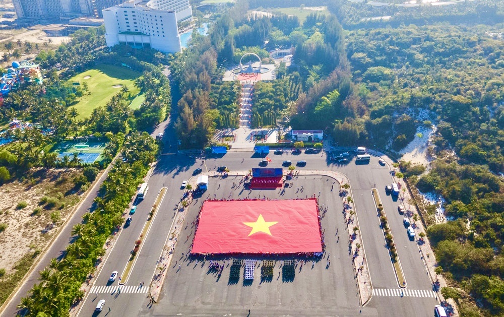 Lá cờ Tổ quốc có diện tích 2.166m² được triển khai tại quảng trường. Đồng thời, hình ảnh lễ chào cờ của quân và dân tại đặc khu Trường Sa được kết nối, góp phần tăng cường ý thức hướng về biển, đảo.