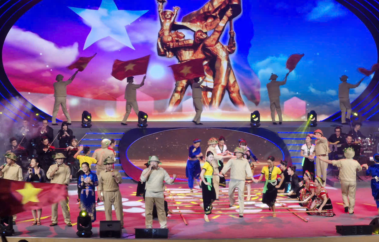 Các hiệu ứng LED, visual, hoạt cảnh sân khấu được thiết kế nhằm khắc họa không khí chiến khu, chân dung người chiến sĩ - nghệ sĩ và tinh thần nhân dân trong kháng chiến.