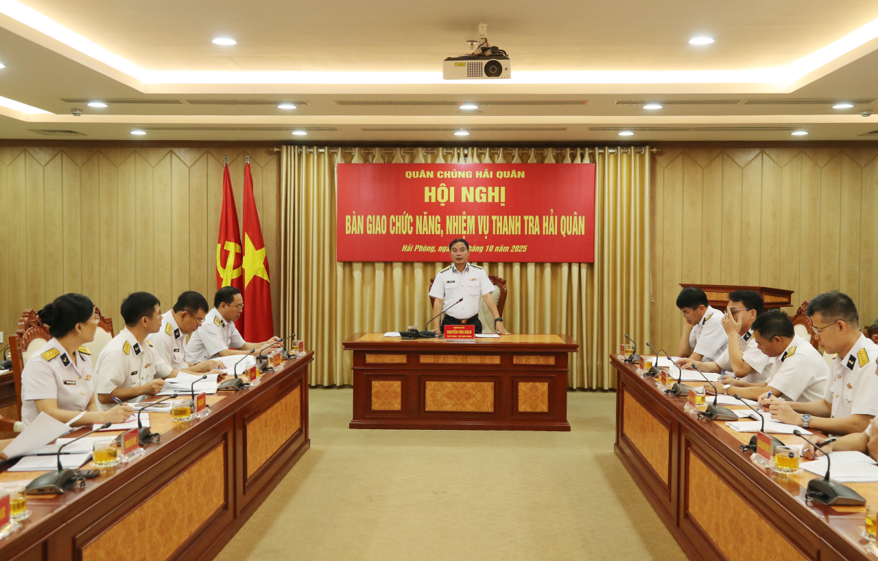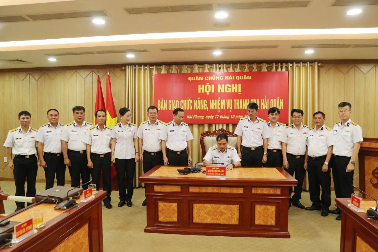 HQ Online - Sáng 17/10, tại Hải Phòng, Quân chủng Hải quân tổ chức hội nghị bàn giao chức năng, nhiệm vụ, hồ sơ, tài liệu, cơ sở vật chất của Thanh tra Hải quân. Chuẩn Đô đốc Nguyễn Văn Bách, Phó Tư lệnh Tham mưu trưởng Hải quân chủ trì hội nghị. Tham dự hội nghị có thủ trưởng Bộ Tham mưu, Cục Chính trị, Cục Hậu cần-Kỹ thuật và các cơ quan chức năng Bộ Tư lệnh Hải quân.