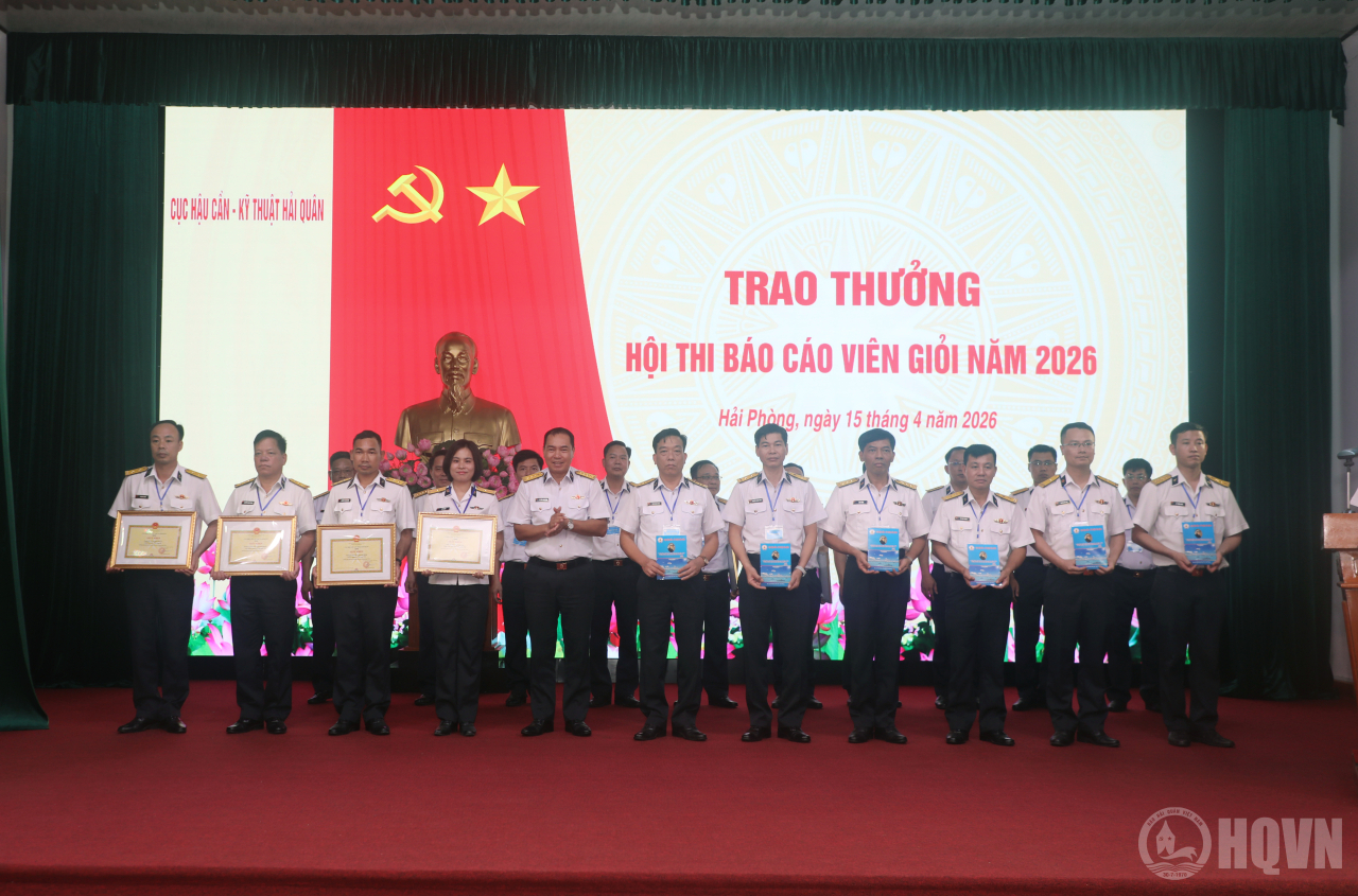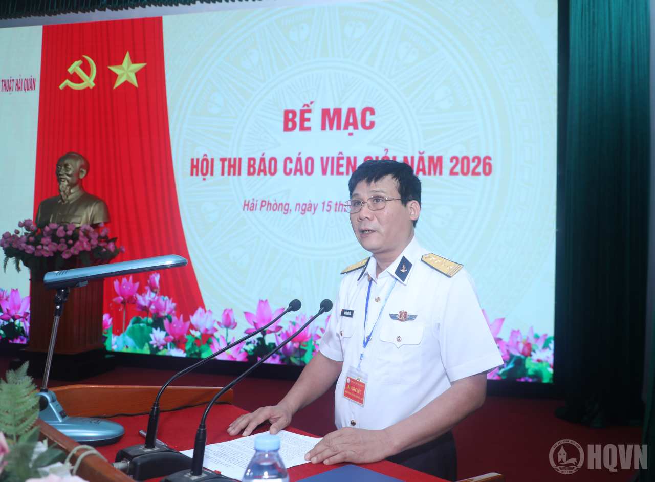 HQ Online - Chiều 15/4, Cục Hậu cần-Kỹ thuật Hải quân tổ chức bế mạc Hội thi báo cáo viên giỏi năm 2026. Đại tá Lê Hồng Quang, Chủ nhiệm Hậu cần-Kỹ thuật Hải quân dự, chỉ đạo hội thi.