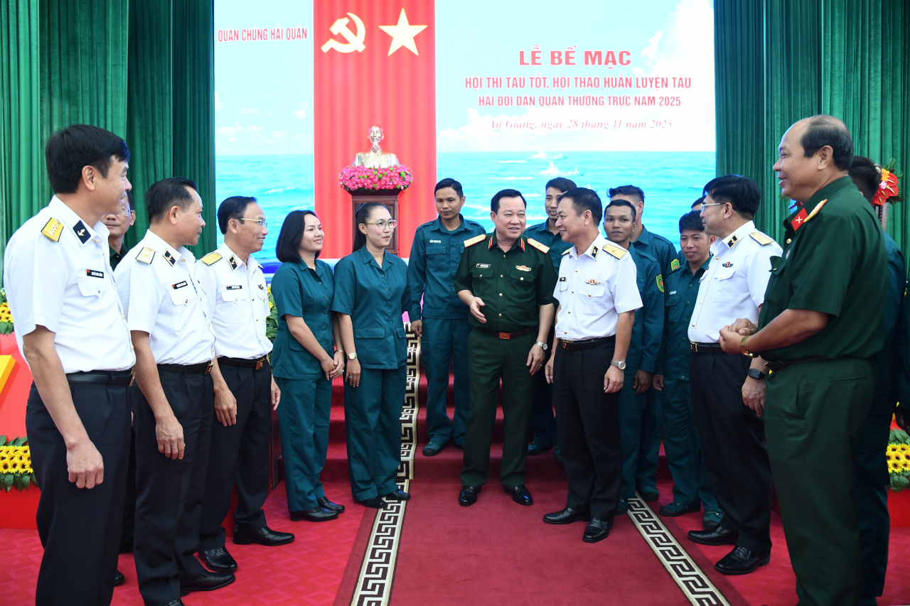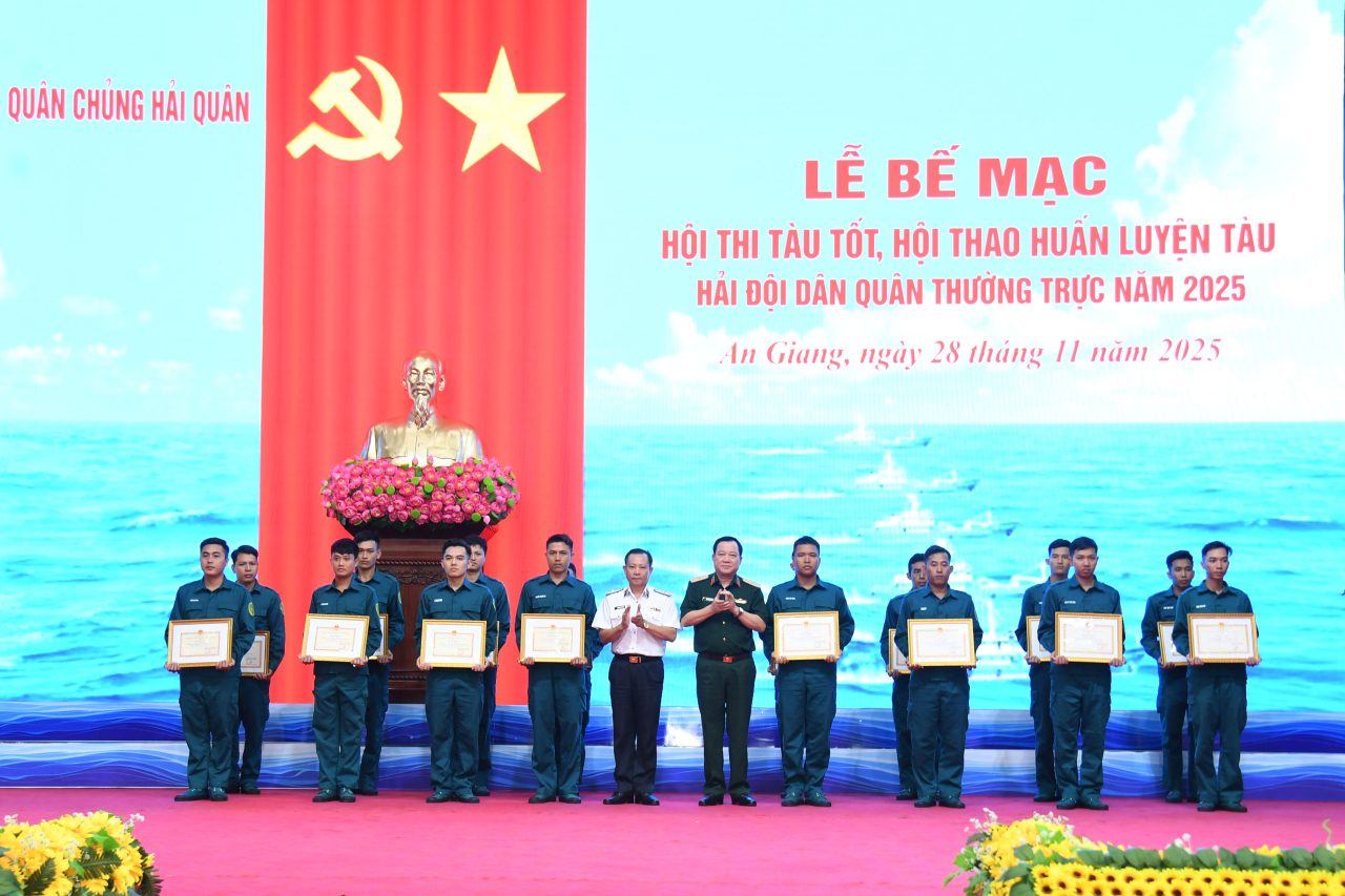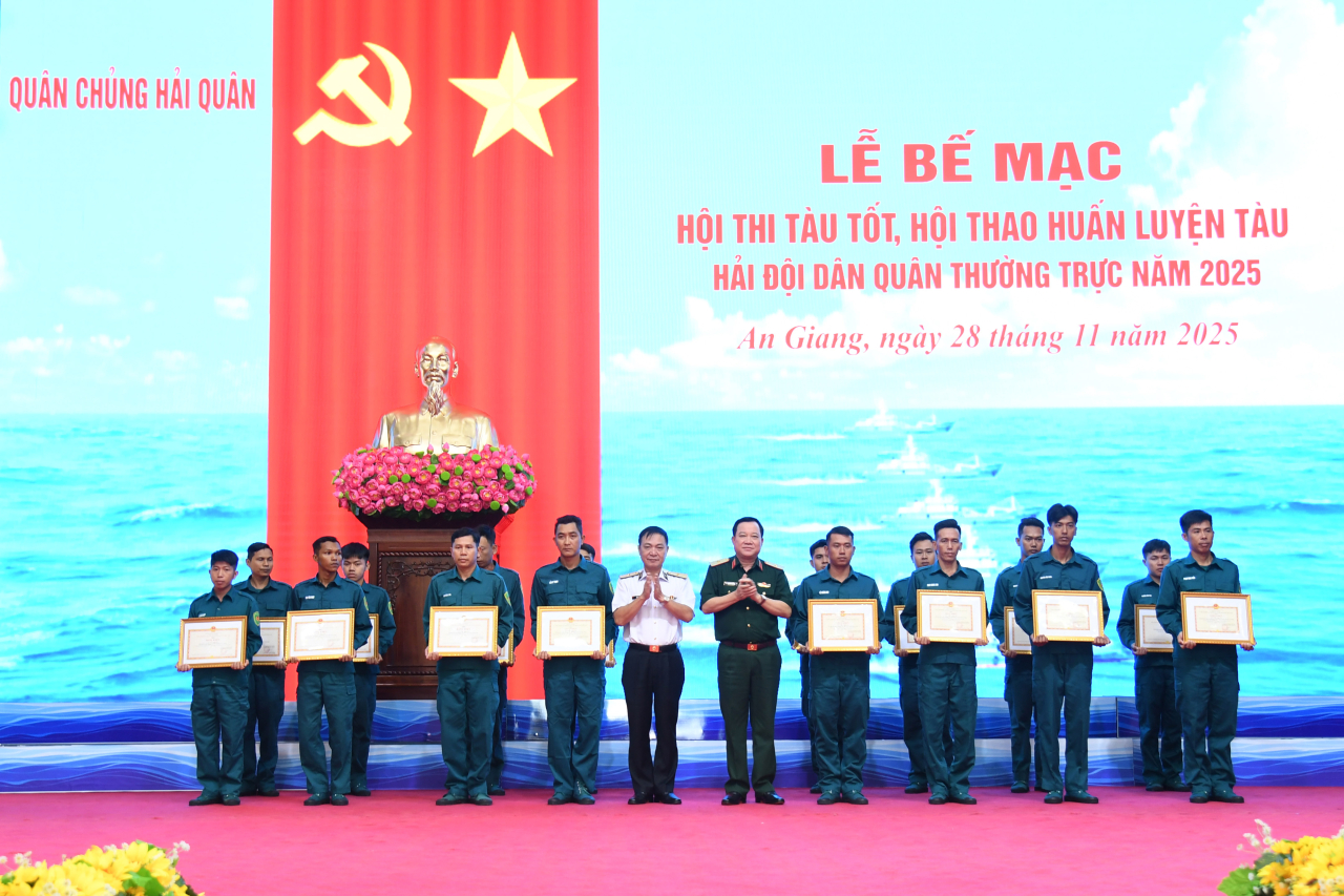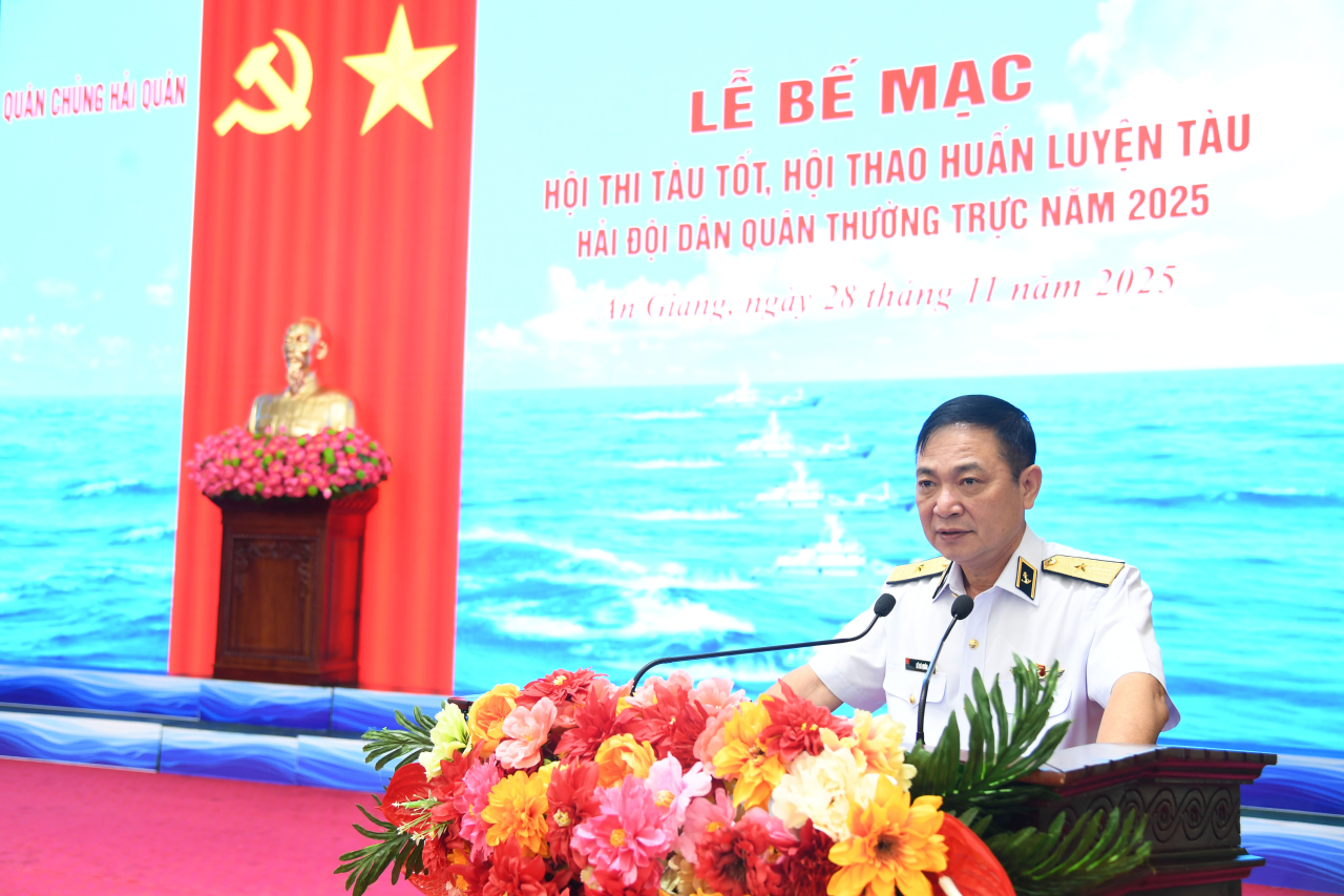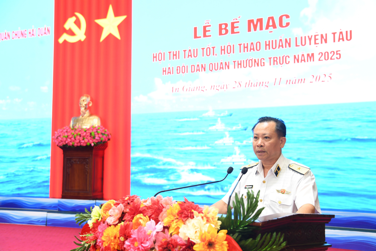 HQ Online - Sáng 28/11, tại Bộ Tư lệnh Vùng 5 Hải quân (đặc khu Phú Quốc, tỉnh An Giang), Quân chủng Hải quân tổ chức bế mạc Hội thi tàu tốt, Hội thao huấn luyện tàu Hải đội Dân quân thường trực năm 2025. Chuẩn Đô đốc Lê Bá Quân, Phó Tư lệnh Hải quân, Trưởng ban tổ chức hội thi, hội thao chủ trì.