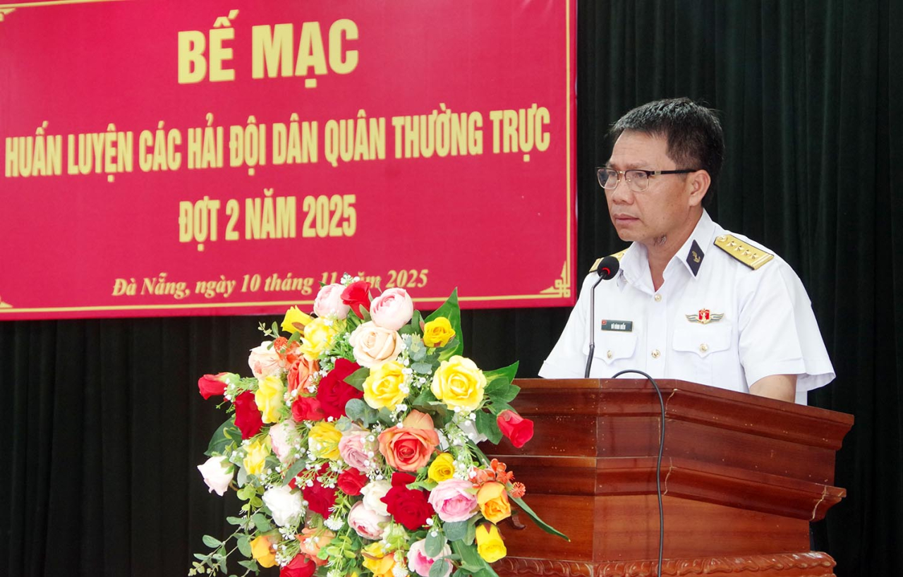 Phát biểu bế mạc, Đại tá Vũ Đình Hiển chúc mừng cán bộ, chiến sĩ các tàu Hải đội DQTT và biểu dương các tổ giáo viên thuộc Lữ đoàn 161 đã nỗ lực đạt được những kết quả tích cực, bảo đảm an toàn mọi mặt trong đợt huấn luyện vừa qua.