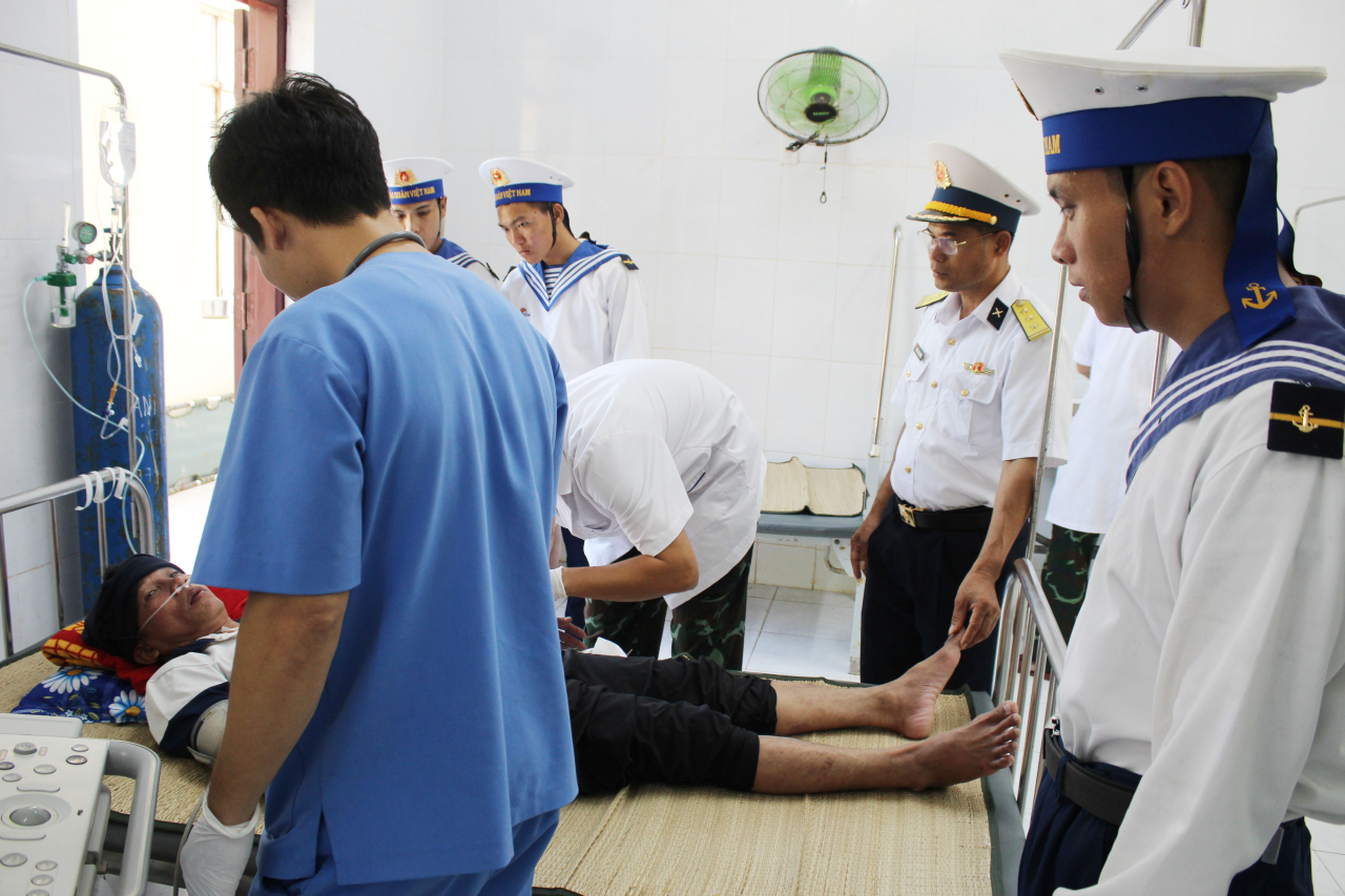 HQ Online - Ngày 17/3, Bệnh xá đảo Song Tử Tây, Lữ đoàn 146, Vùng 4 Hải quân đã tiếp nhận, cấp cứu kịp thời một ngư dân bị giảm áp do lặn sâu khi đang khai thác hải sản trên khu vực quần đảo Trường Sa.