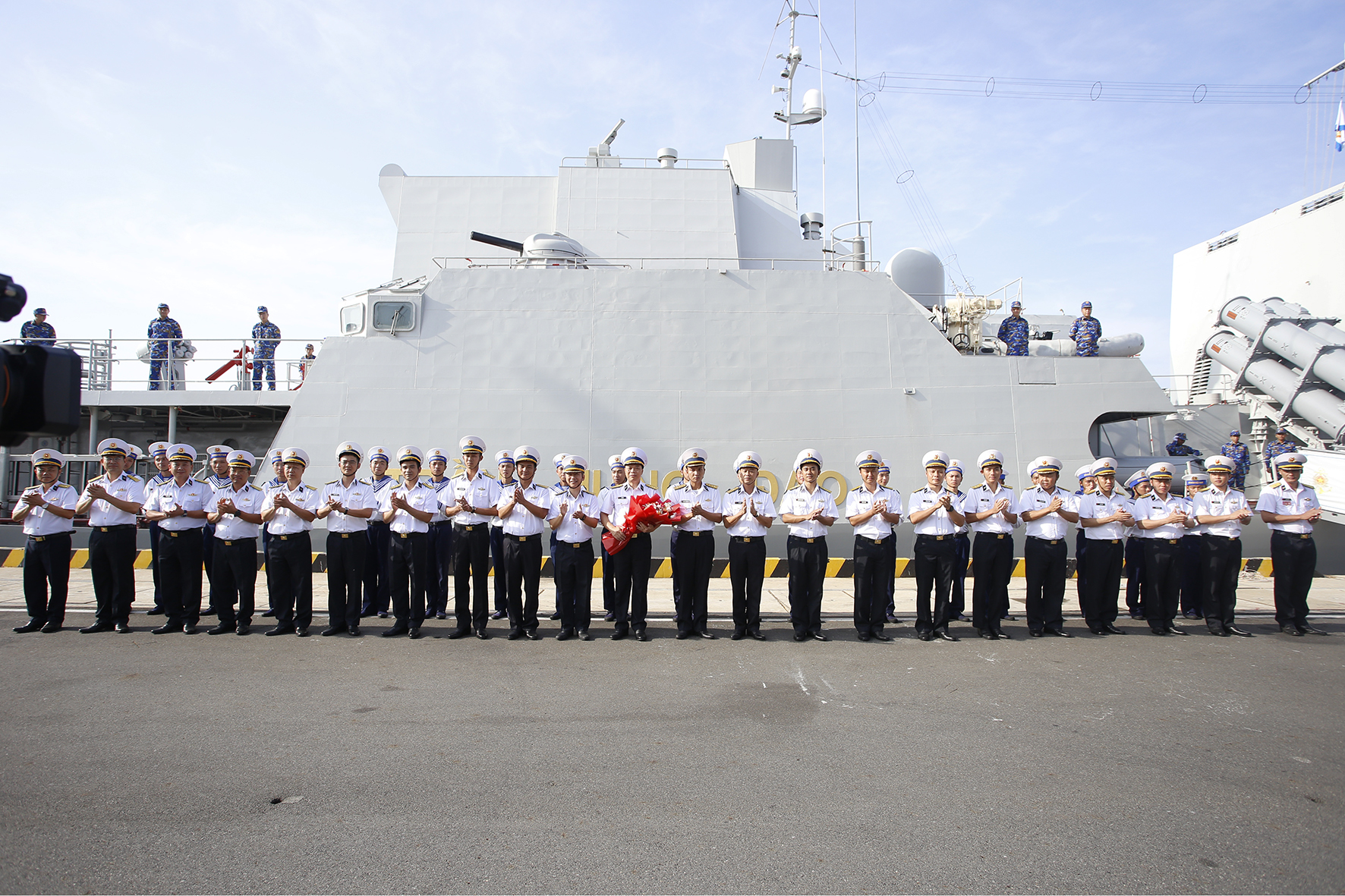 Cán bộ, thủy thủ Tàu 015-Trần Hưng Đạo thực hiện nghi thức chào cảng