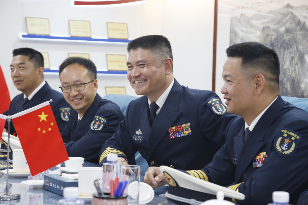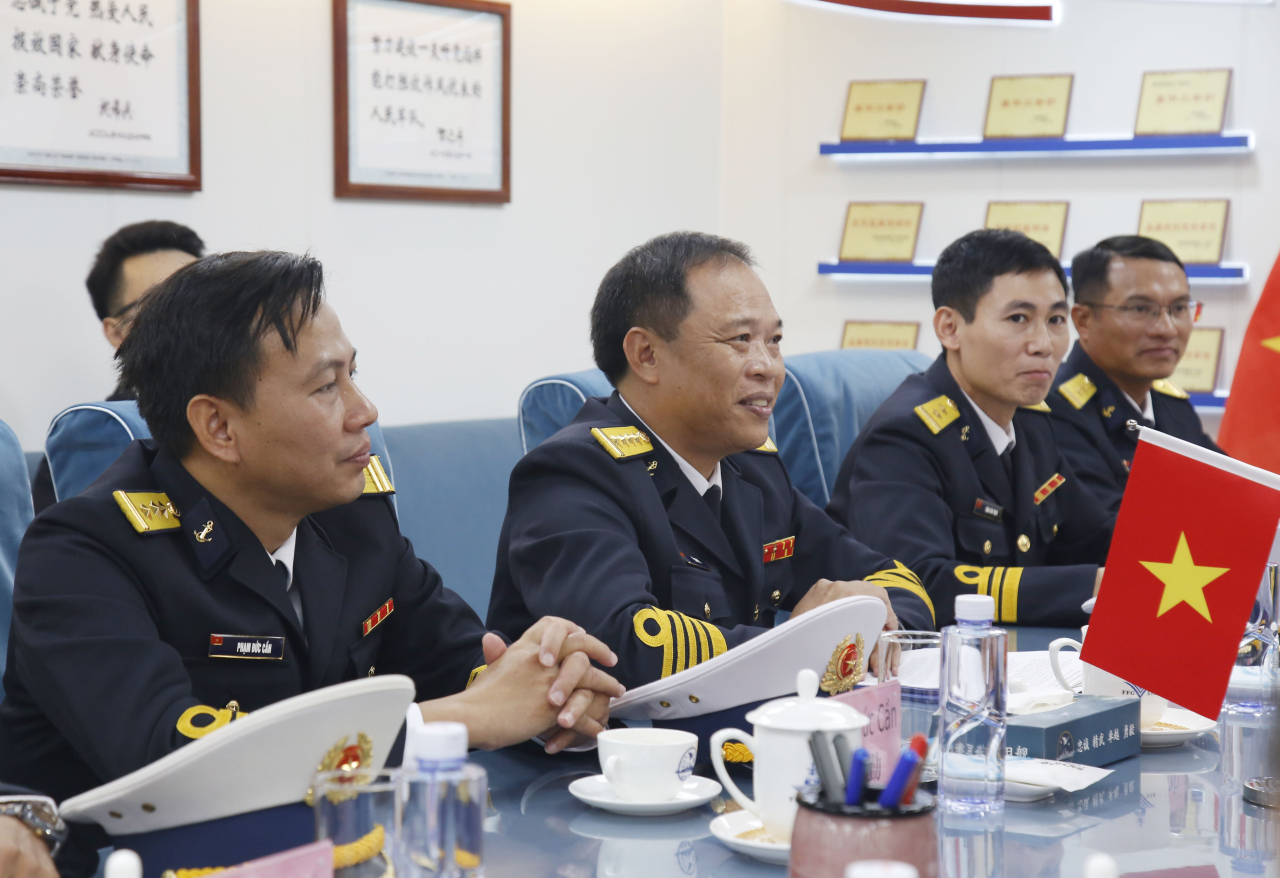 Chỉ huy hai biên đội gặp gỡ xã giao trên Tàu 568 của Hải quân Trung Quốc