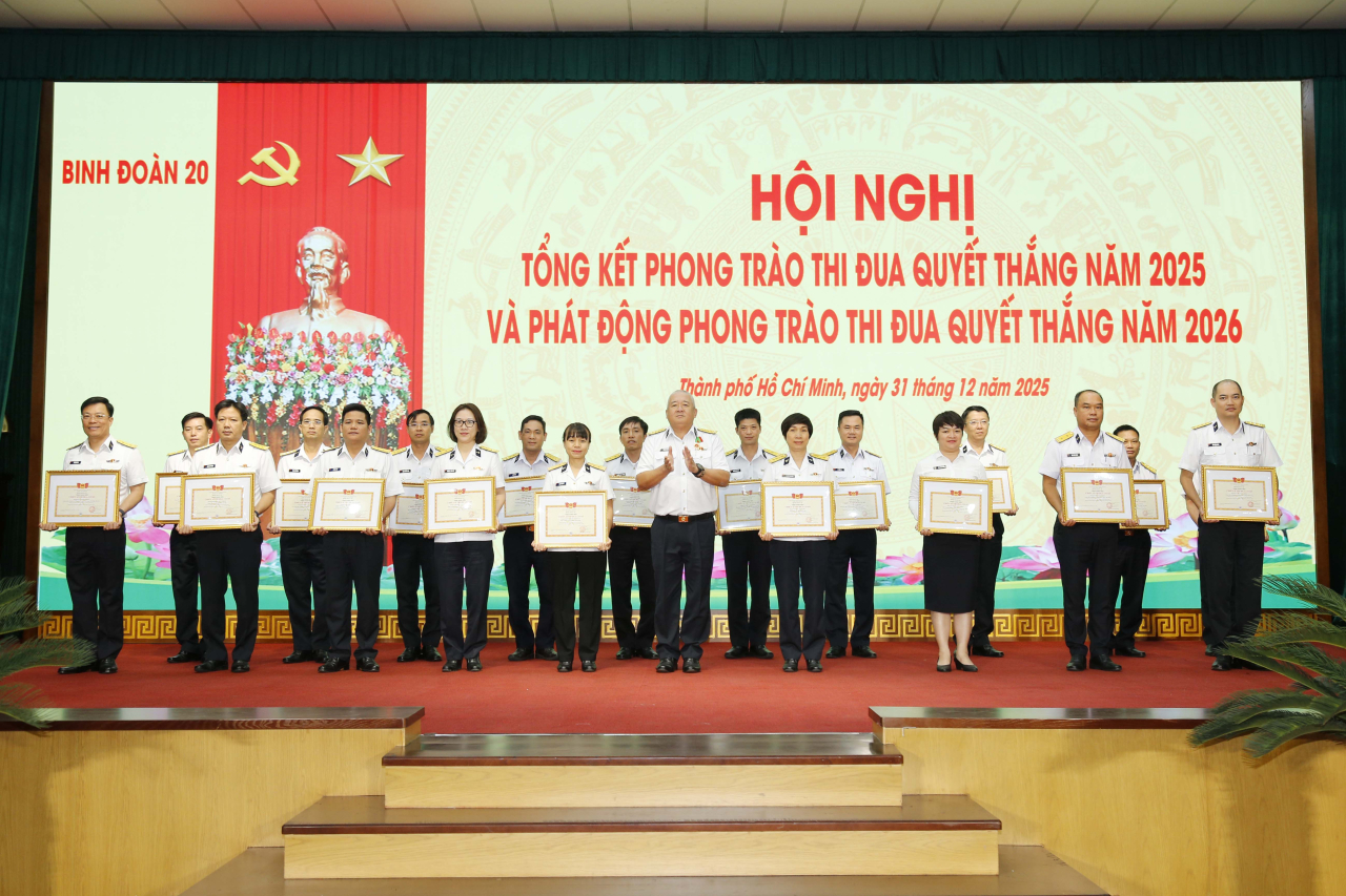 Dịp này, Binh đoàn 20 tổ chức trao Huân chương Bảo vệ Tổ quốc hạng Ba cho các đồng chí lãnh đạo Binh đoàn; trao thưởng của Bộ Quốc phòng và Binh đoàn cho các tập thể, cá nhân thuộc các cơ quan, đơn vị, công ty có thành tích tiêu biểu xuất sắc trong phong trào thi đua quyết thắng năm 2025.