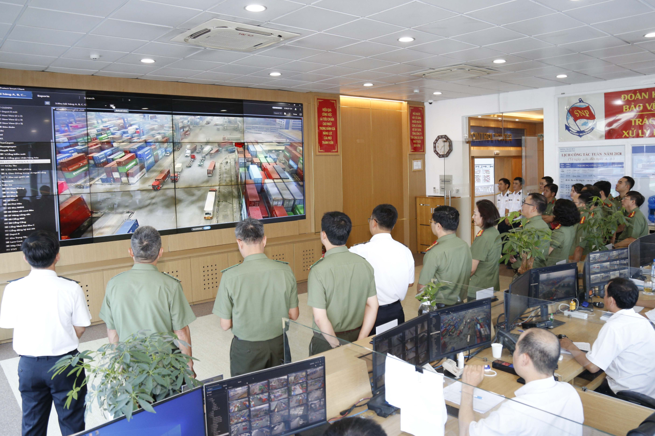 Đoàn công tác đã tham quan một số khu vực trọng yếu tại cảng Tân cảng Cát Lái, khu vực cầu tàu, Trung tâm Điều hành sản xuất, Trung tâm An ninh cảng.
