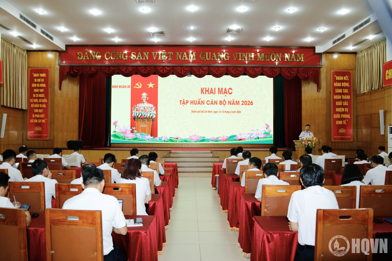 HQ Online - Sáng 14/4, tại TP. Hồ Chí Minh, Binh đoàn 20 - Tổng công ty Tân cảng Sài Gòn tổ chức khai mạc tập huấn cán bộ năm 2026. Đại tá Bùi Sĩ Tuấn, Phó Tư lệnh Binh đoàn dự, phát biểu chỉ đạo. Thượng tá Nguyễn Hồng Kiên, Tham mưu trưởng Binh đoàn chủ trì lớp tập huấn.