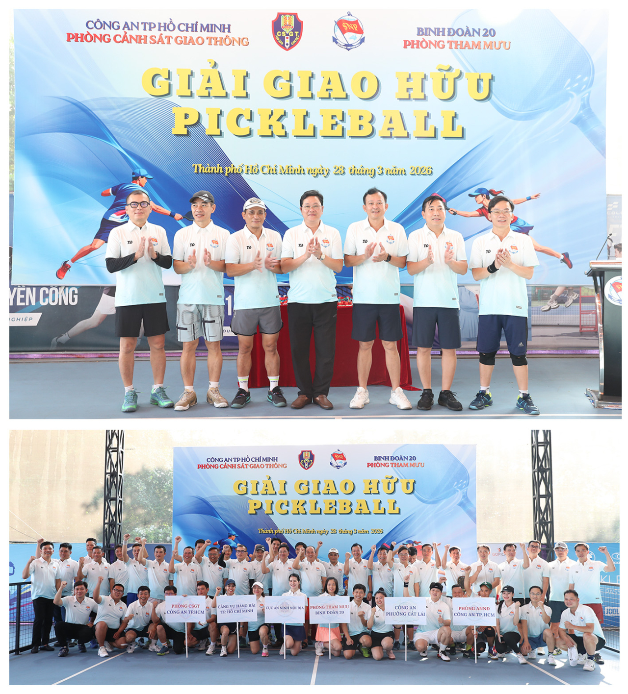 HQ Online - Sáng 28/3, tại TP. Hồ Chí Minh, Binh đoàn 20 tổ chức giải giao hữu Pickleball giữa Phòng Tham mưu, Binh đoàn 20 và Phòng Cảnh sát giao thông, Công an TP. Hồ Chí Minh (PC08).