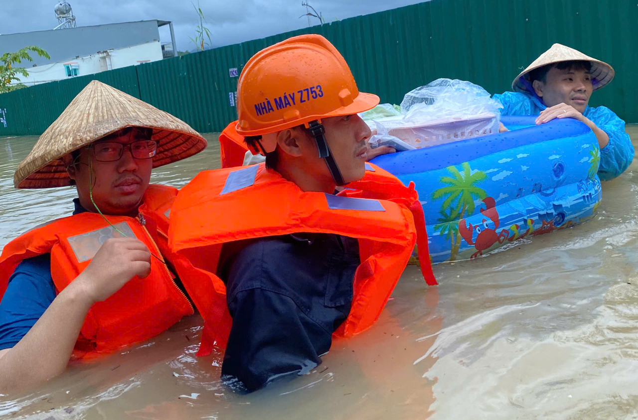 Lực lượng cứu hộ của Nhà máy Z753 giúp dân vùng ngập lụt tại các phường Bắc Nha Trang và Tây Nha Trang