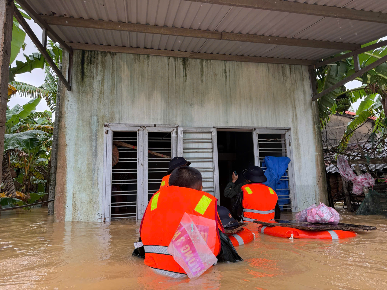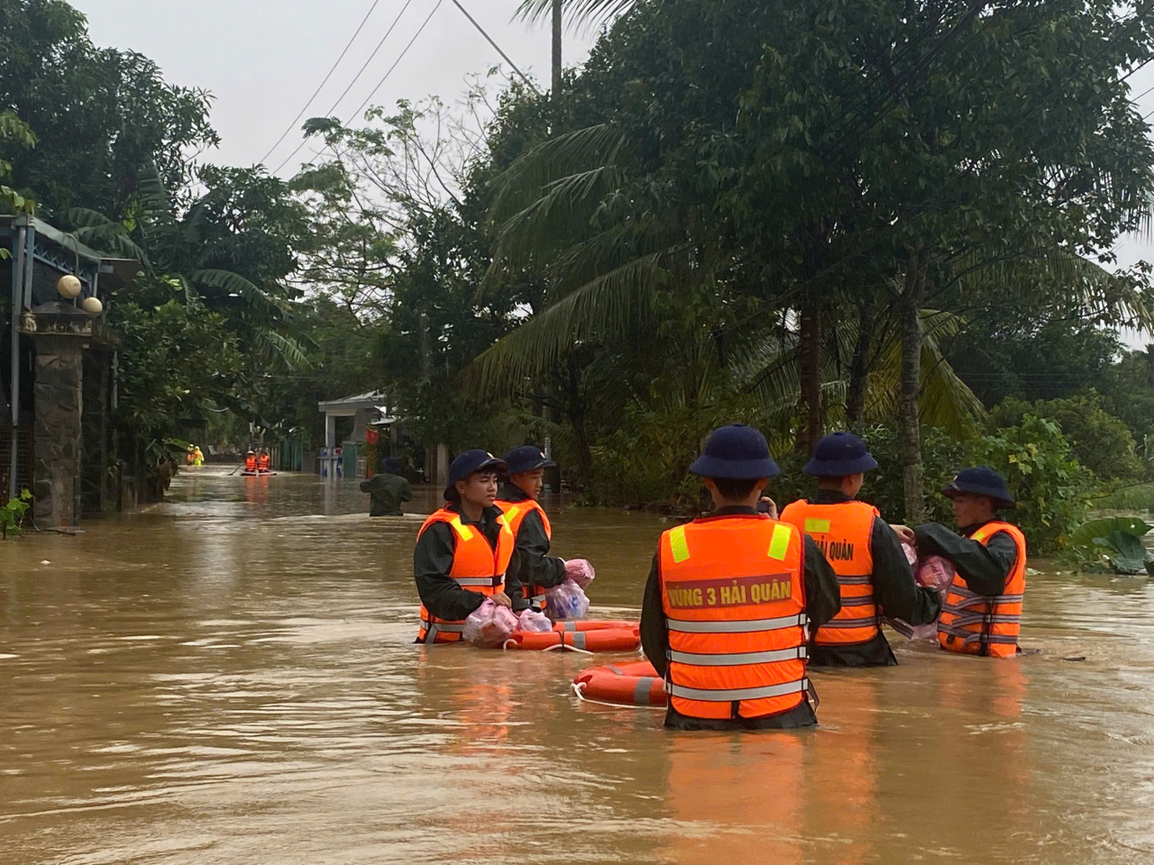 Tại tổ dân phố Thanh Nam, phường Hội An (TP. Đà Nẵng) và thôn Phú Xuân 2, 3 xã Hòa Tiến (TP Đà Nẵng), tình hình thời tiết vẫn diễn biến hết sức phức tạp. Mực nước ngập có nơi hơn 3 mét, dòng chảy xiết khiến công tác tiếp cận người dân gặp nhiều khó khăn. Lực lượng cứu trợ đã phải dùng thuyền nhỏ để trung chuyển hàng hóa, sau đó bàn giao cho tổ trưởng tổ dân phố tiếp tục đưa đến từng hộ gia đình ở khu vực ngập trọng điểm, đảm bảo không ai bị thiếu đói, rét mướt.