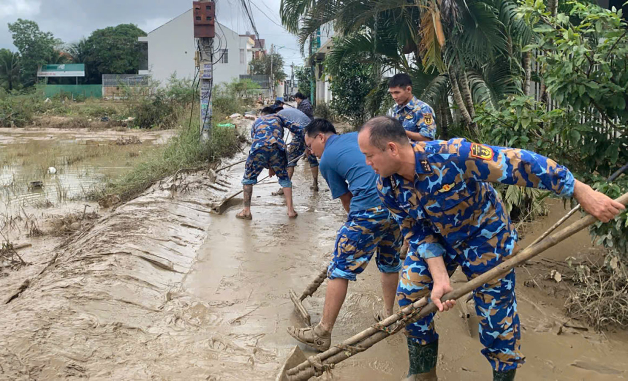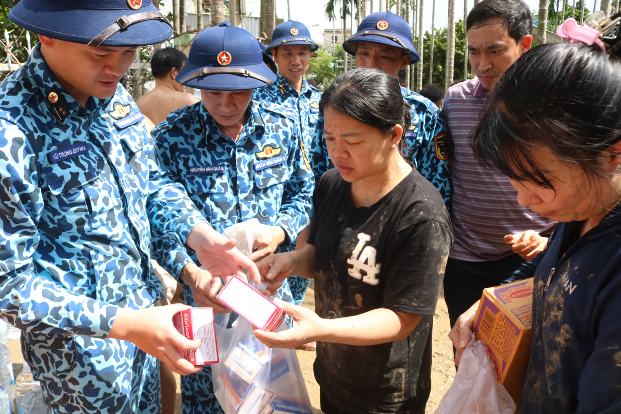 Vùng 4 Hải quân duy trì gần 1.000 cán bộ, chiến sĩ tổ chức thu dọn bùn đất, vệ sinh môi trường, sửa chữa công trình dân sinh; cử lực lượng quân y khám bệnh, cấp thuốc miễn phí cho bà con.