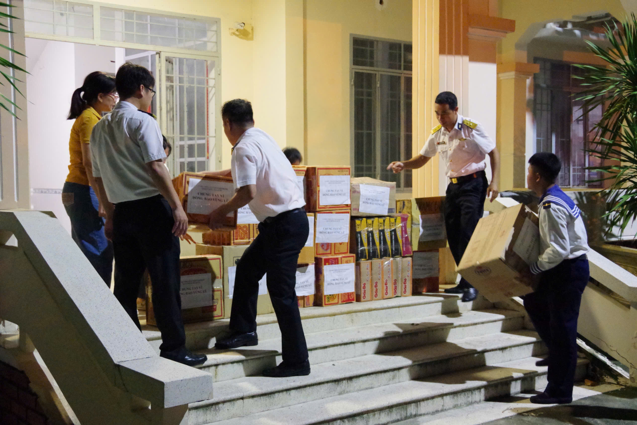 Đoàn công tác Lữ đoàn 954 tập trung nhiều phần quà để tặng nhân dân trên địa bàn