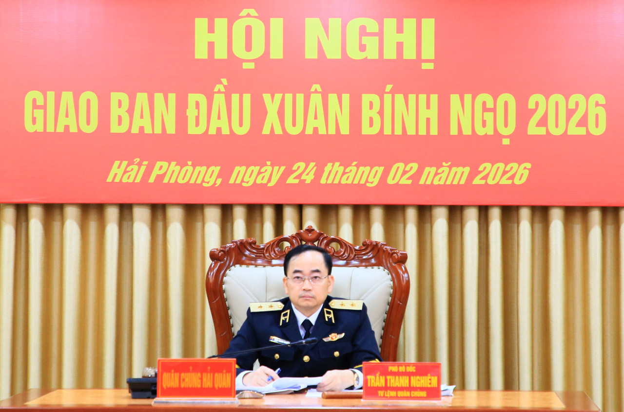 Phát biểu tại hội nghị, cùng với đại diện các cơ quan, đơn vị trong toàn quân, Phó Đô đốc Trần Thanh Nghiêm báo cáo công tác tổ chức hoạt động cho bộ đội vui Xuân đón Tết nguyên đán Bính Ngọ 2026; kết quả thực hiện nhiệm vụ tháng 2 của Quân chủng Hải quân và nêu bật một số nhiệm vụ trọng tâm đến hết tháng 3.