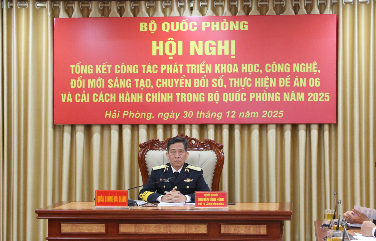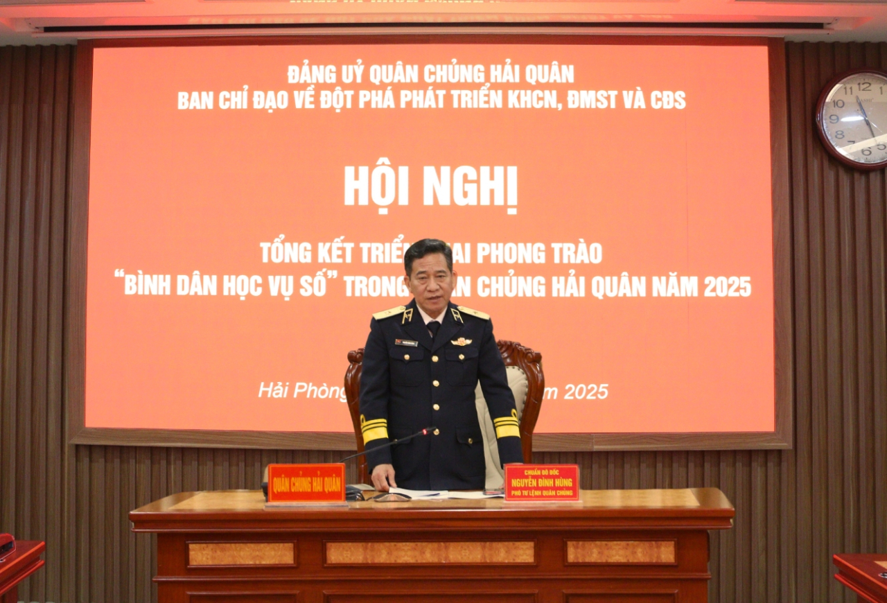 *Cũng trong sáng 30/12, Ban Chỉ đạo về đột phá phát triển KHCN, ĐMST và CĐS Quân chủng Hải quân tổ chức Hội nghị tổng kết triển khai phong trào "Bình dân học vụ số" năm 2025. Chuẩn Đô đốc Nguyễn Đình Hùng, Phó Tư lệnh Quân chủng chủ trì hội nghị.