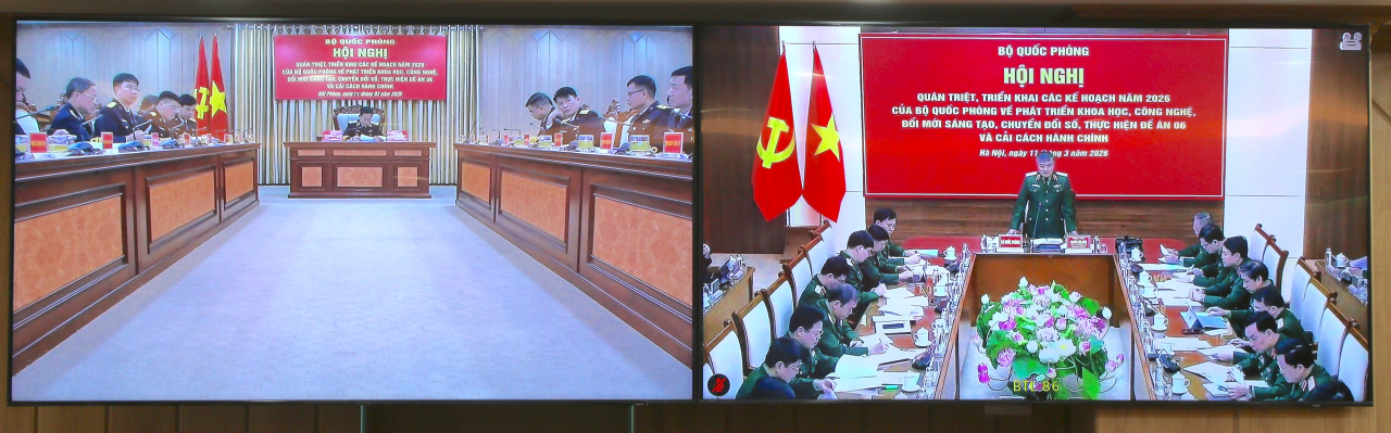 HQ Online - Sáng 11/3, Bộ Quốc phòng tổ chức Hội nghị quán triệt, triển khai các kế hoạch năm 2026 của Bộ Quốc phòng về phát triển khoa học công nghệ, đổi mới sáng tạo, chuyển đổi số (KHCN, ĐMST, CĐS), thực hiện Đề án 06 và cải cách hành chính. Thượng tướng Nguyễn Văn Hiền, Ủy viên Trung ương Đảng, Thứ trưởng Bộ Quốc phòng, Phó trưởng ban Thường trực Ban chỉ đạo phát triển KHCN, ĐMST, CĐS trong Quân đội chủ trì hội nghị.