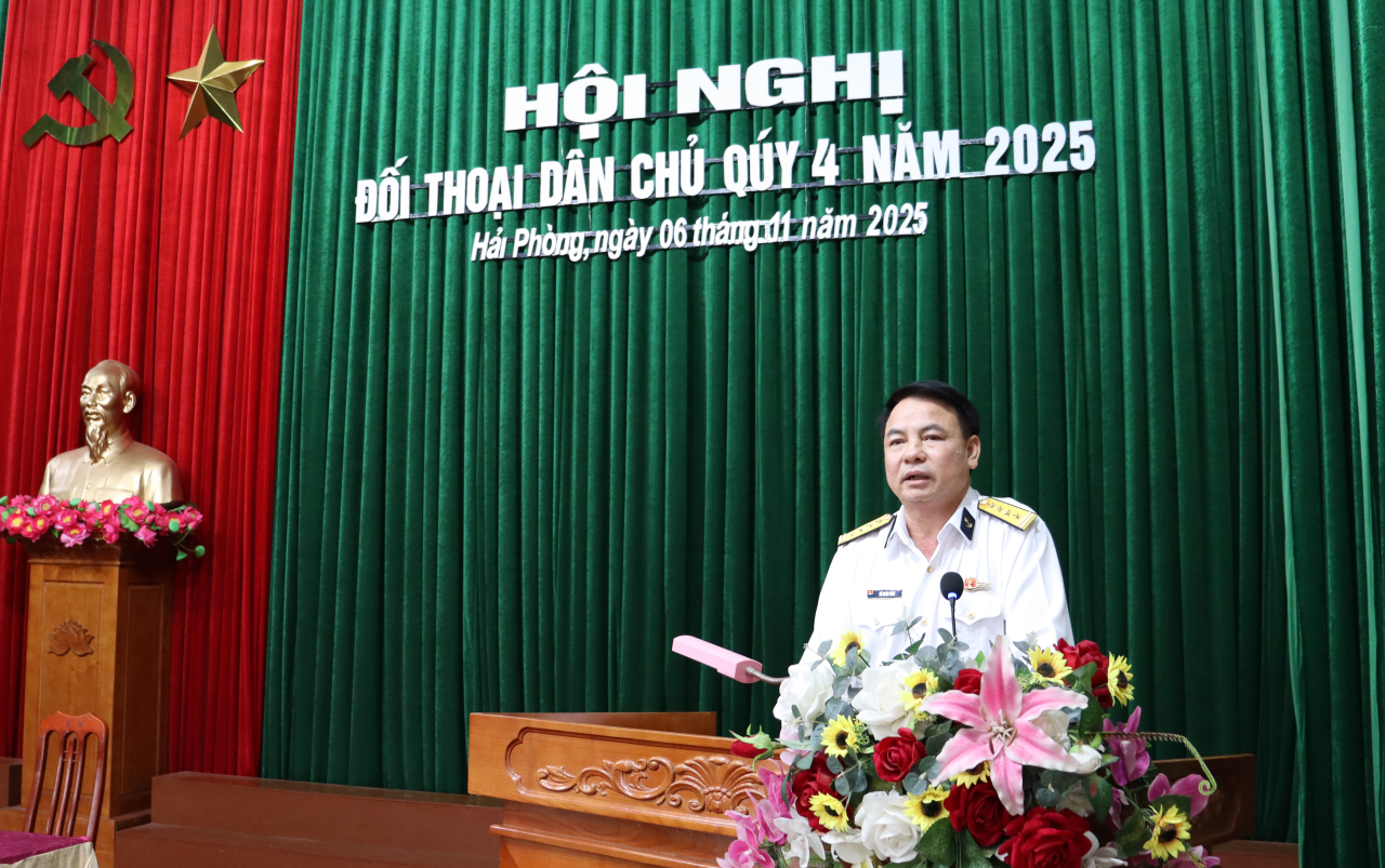 HQ Online - Sáng 6/11, tại Hải Phòng, Đại tá Vũ Xuân Tình, Phó Chủ nhiệm Chính trị Bộ Tham mưu Hải quân chủ trì đối thoại dân chủ với cán bộ, chiến sĩ Trung tâm 47.