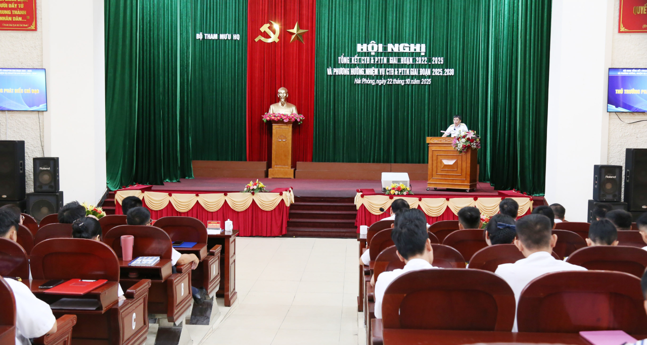 HQ Online - Sáng 22/10, tại TP. Hải Phòng, Bộ Tham mưu Hải quân tổ chức Hội nghị tổng kết công tác đoàn và phong trào thanh niên (CTĐ và PTTN) giai đoạn 2022-2025; xác định phương hướng, mục tiêu, nhiệm vụ CTĐ và PTTN giai đoạn 2025-2030. Chuẩn Đô đốc Hoàng Lương Ngọc, Phó Tham mưu trưởng Hải quân, Bí thư Đảng ủy Bộ Tham mưu dự, chỉ đạo. Đại tá Vũ Xuân Tình, Phó Chủ nhiệm Chính trị Bộ Tham mưu chủ trì.