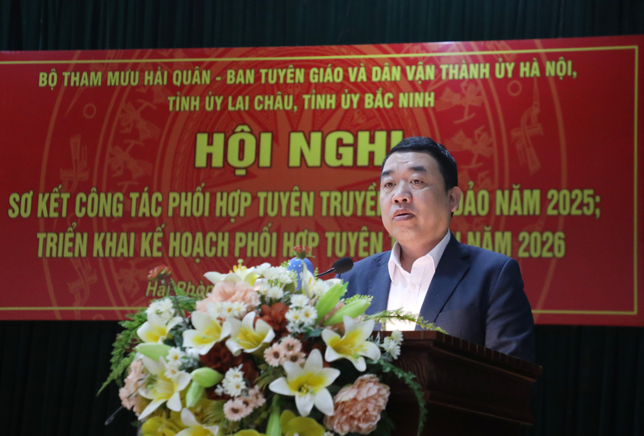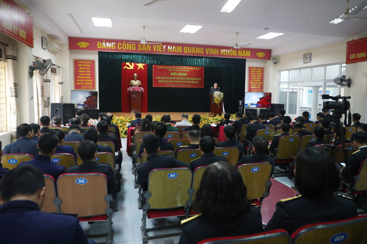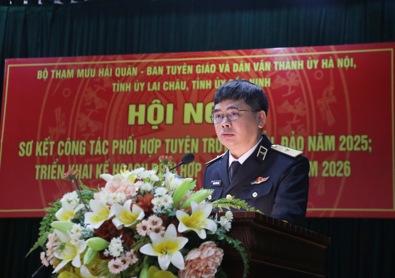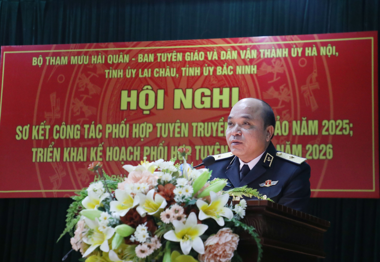Báo cáo trung tâm tại hội nghị nêu rõ: năm 2025, trong bối cảnh tình hình biển đảo và biên giới còn tiềm ẩn nhiều yếu tố phức tạp, công tác phối hợp tuyên truyền giữa Bộ Tham mưu Hải quân và các địa phương tiếp tục được triển khai đồng bộ, nền nếp, sát thực tiễn.