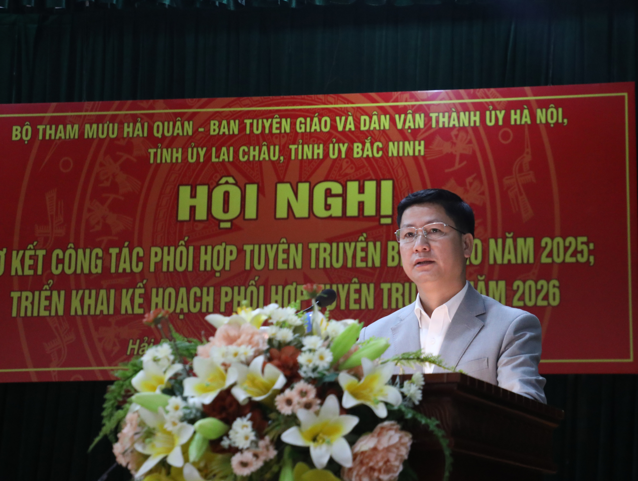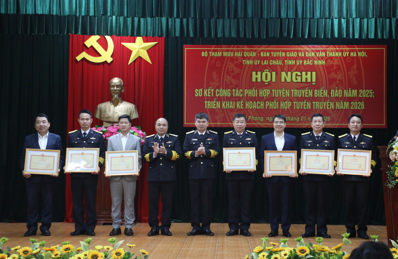 HQ Online - Sáng 21/1, tại TP Hải Phòng, Bộ Tham mưu Hải quân phối hợp với Ban Tuyên giáo và Dân vận (BTG&DV) Thành ủy Hà Nội, Tỉnh ủy Lai Châu và Bắc Ninh tổ chức Hội nghị sơ kết công tác phối hợp tuyên truyền biển đảo (TTBĐ) năm 2025; triển khai kế hoạch phối hợp năm 2026. Chuẩn Đô đốc Nguyễn Văn Bách, Phó Tư lệnh, Tham mưu trưởng Hải quân và Chuẩn Đô đốc Đỗ Văn Yên, Phó Chính ủy Hải quân dự hội nghị.