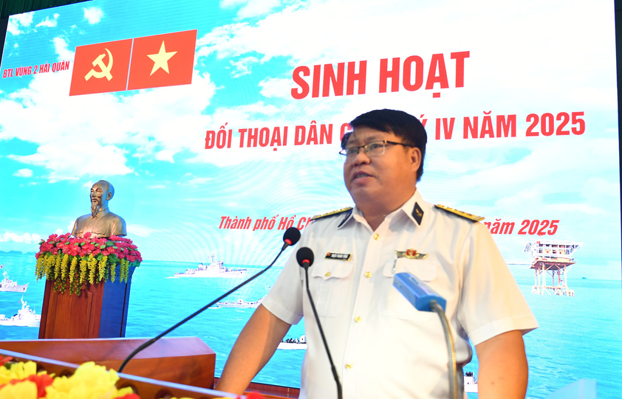 HQ Online - Sáng 25/12, tại phường Phước Thắng (TP Hồ Chí Minh), Bộ Tư lệnh Vùng 2 Hải quân tổ chức sinh hoạt đối thoại dân chủ với cán bộ, chiến sĩ Lữ đoàn 171. Đại tá Triệu Thanh Tùng, Phó Tư lệnh Vùng chủ trì buổi sinh hoạt.