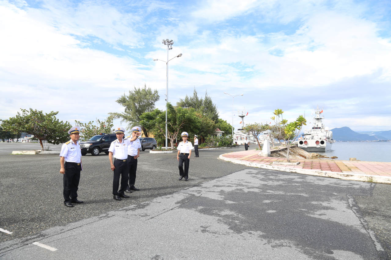 HQ Online - Sáng 5/11, tại Quân cảng Cam Ranh (tỉnh Khánh Hòa), Chuẩn Đô đốc Nguyễn Anh Tuấn, Tư lệnh Vùng 4 Hải quân và đoàn công tác đã kiểm tra công tác sẵn sàng ứng phó, phòng chống bão số 13 tại các đơn vị thuộc Cụm lực lượng 4.