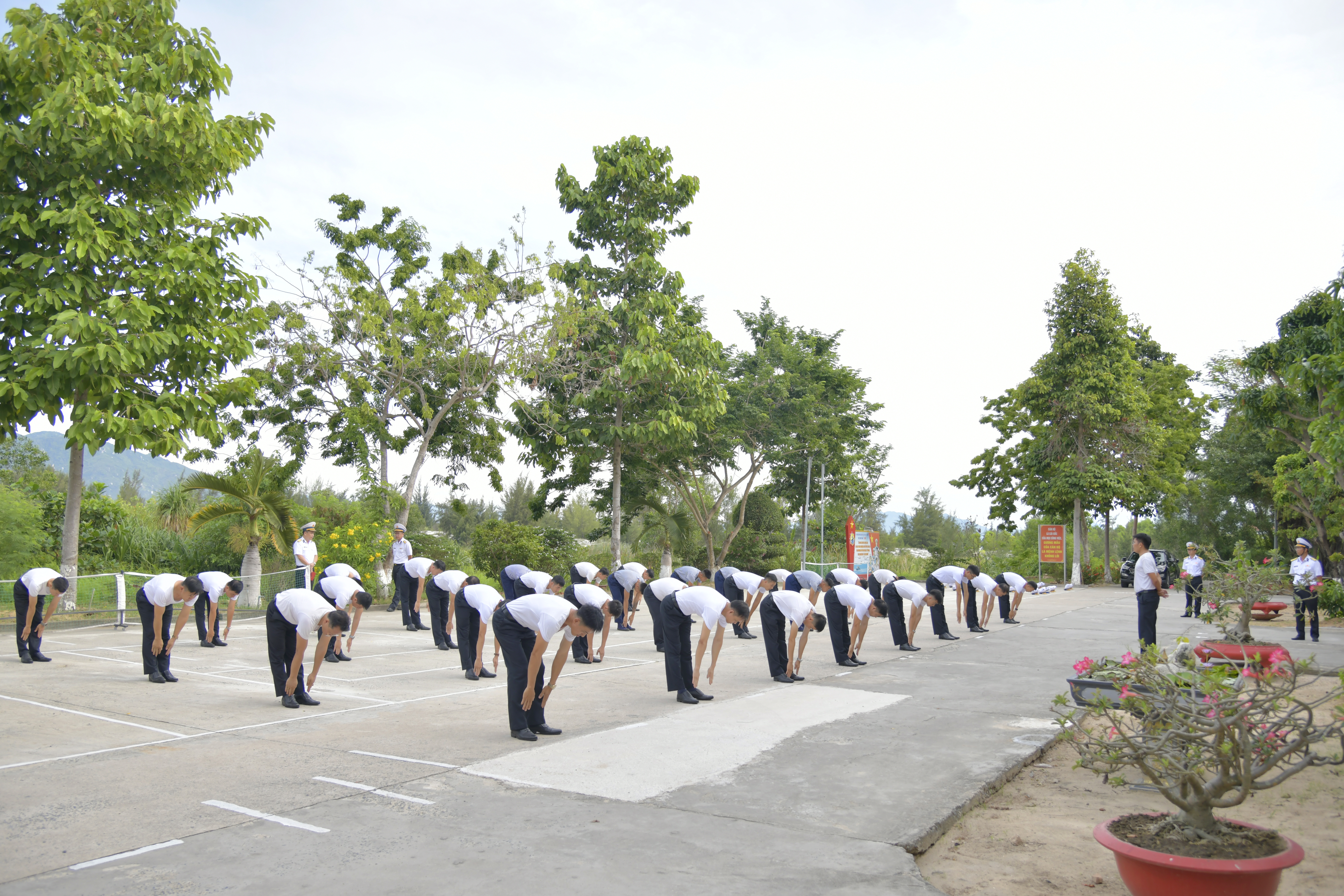 Đoàn kiểm tra bộ đội đồng diễn 4 bài thể dục buổi sáng