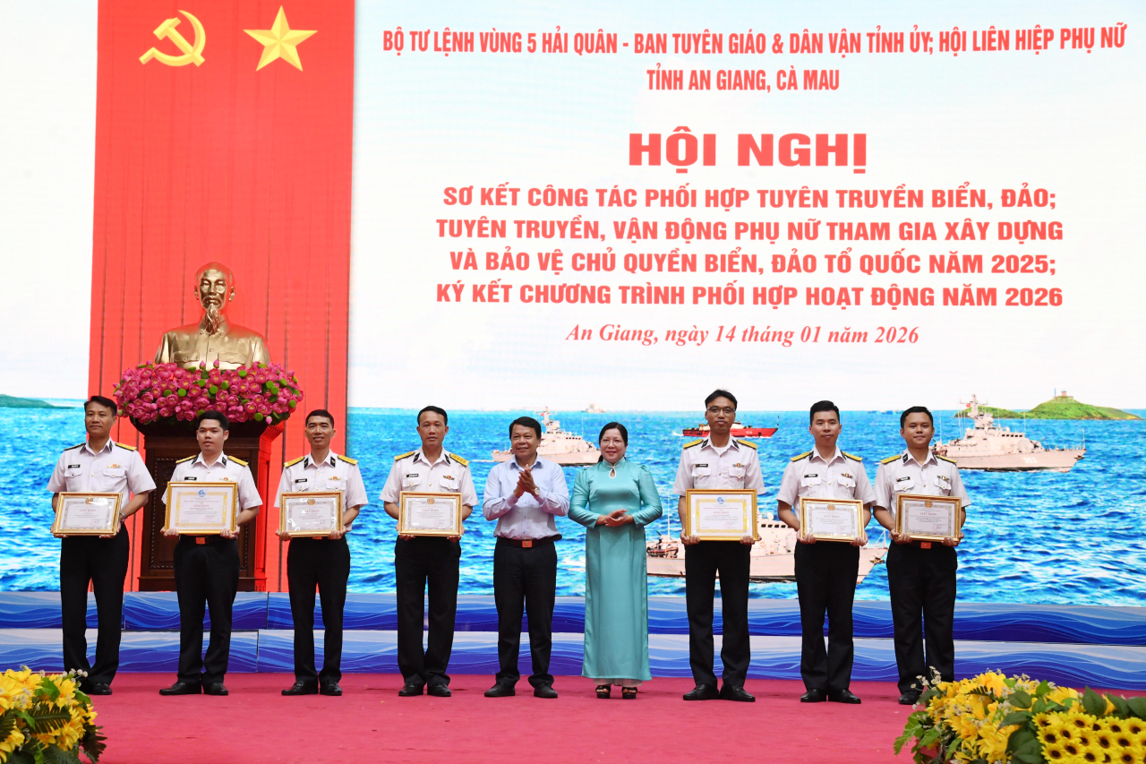 Bộ Tư lệnh Vùng 5 Hải quân, Ban Tuyên giáo và Dân vận Tỉnh ủy, Hội Liên hiệp phụ nữ tỉnh An Giang và tỉnh Cà Mau cũng tặng Giấy khen cho 5 tập thể và 14 cá nhân có thành tích tiêu biểu trong thực hiện chương trình phối hợp.
