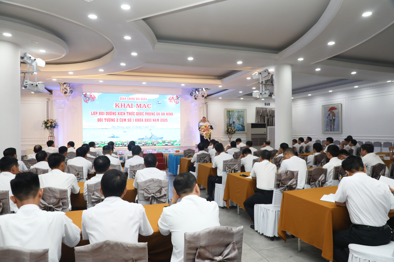 HQ Online - Sáng 22/9, tại TP. Hải Phòng, Quân chủng Hải quân tổ chức khai mạc lớp bồi dưỡng kiến thức quốc phòng và an ninh (QPAN) cho đối tượng 2 khóa 23 cụm số 1. Đại tá Nguyễn Quang Huy, Trưởng phòng Quân sự địa phương, Bộ Tham mưu Hải quân dự, phát biểu khai mạc.