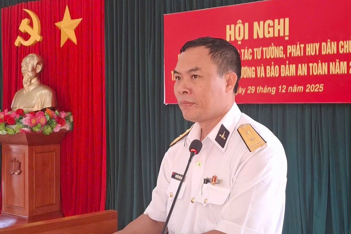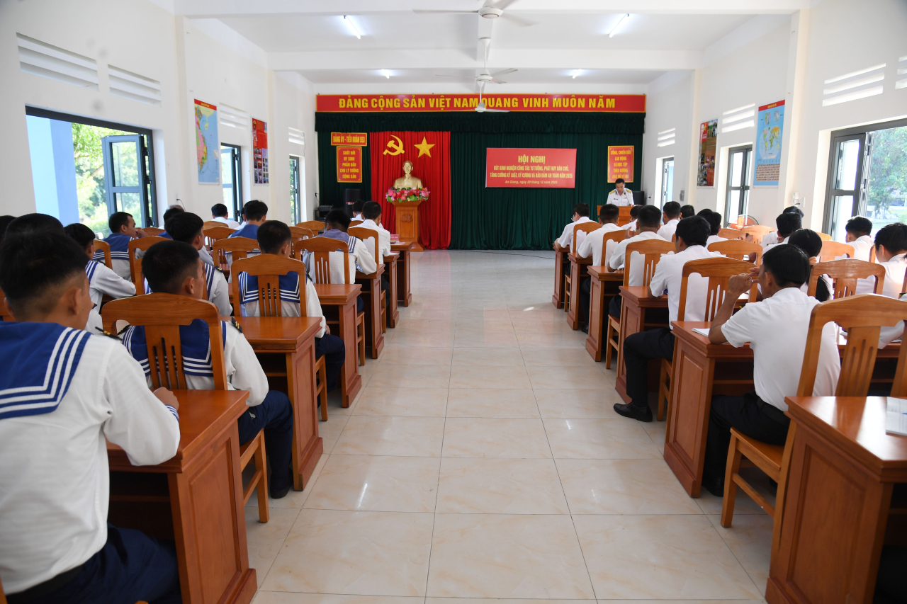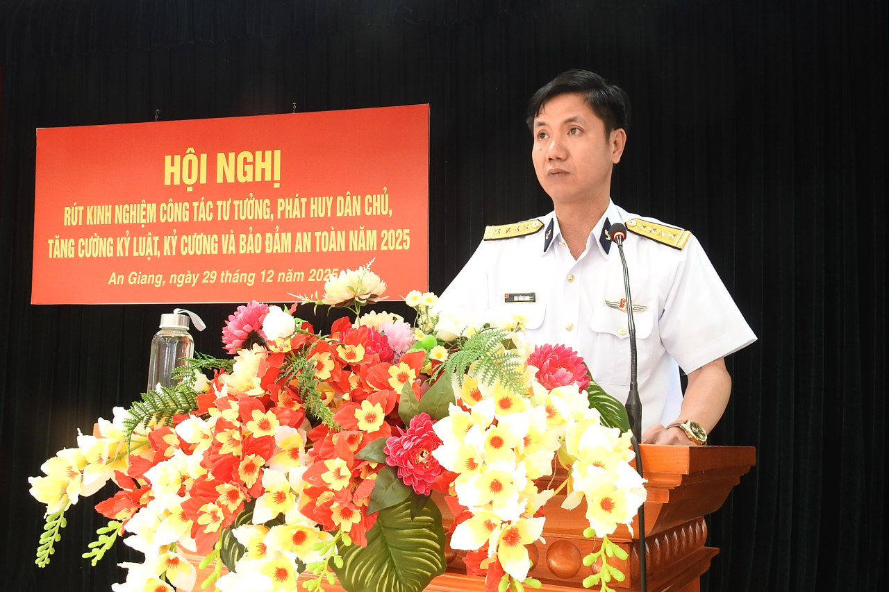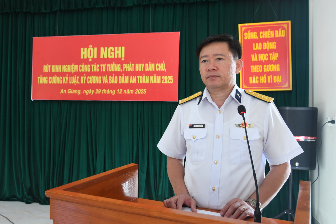 HQ Online - Sáng 29/12, tại đặc khu Phú Quốc, tỉnh An Giang, Trung đoàn 551, Vùng 5 Hải quân tổ chức Hội nghị rút kinh nghiệm công tác tư tưởng, phát huy dân chủ, tăng cường kỷ luật, kỷ cương và bảo đảm an toàn năm 2025. Đại tá Mai Đăng Danh, Phó Tư lệnh, Tham mưu trưởng Vùng 5 dự và chỉ đạo.