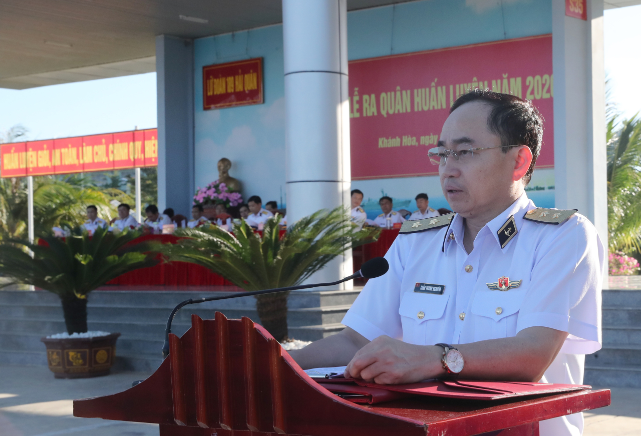 *Phó Đô đốc Trần Thanh Nghiêm, Ủy viên Trung ương Đảng, Ủy viên Quân ủy Trung ương, Tư lệnh Hải quân dự và phát biểu chỉ đạo Lễ ra quân huấn luyện tại Lữ đoàn Tàu ngầm 189 (Khánh Hòa.