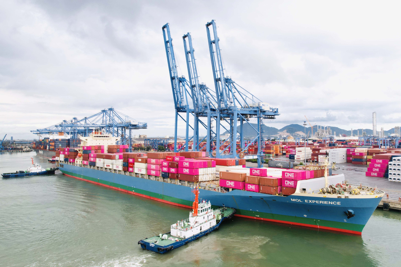 HQ Online - Chiều 29/10, Cảng Quốc tế Tân cảng Cái Mép (TCIT) đón tàu mẹ Mol Experience - chuyến tàu đầu tiên thuộc tuyến dịch vụ SX2/FL2 do hãng tàu Ocean Network Express (ONE) và HMM khai thác, có tải trọng 63.000 DWT.