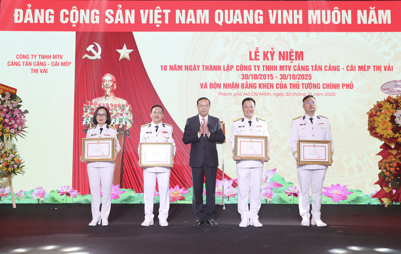 HQ Online - Tối 30/10, tại TP. Hồ Chí Minh, Công ty TNHH MTV Cảng Tân cảng Cái Mép - Thị Vải (TCTT) thuộc Binh đoàn 20-Tổng công ty Tân cảng Sài Gòn (TCSG) tổ chức Lễ kỷ niệm 10 năm Ngày thành lập (30/10/2015 - 30/10/2025) và đón nhận Bằng khen của Thủ tướng Chính phủ.