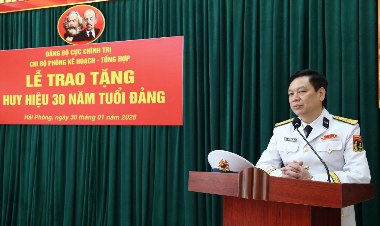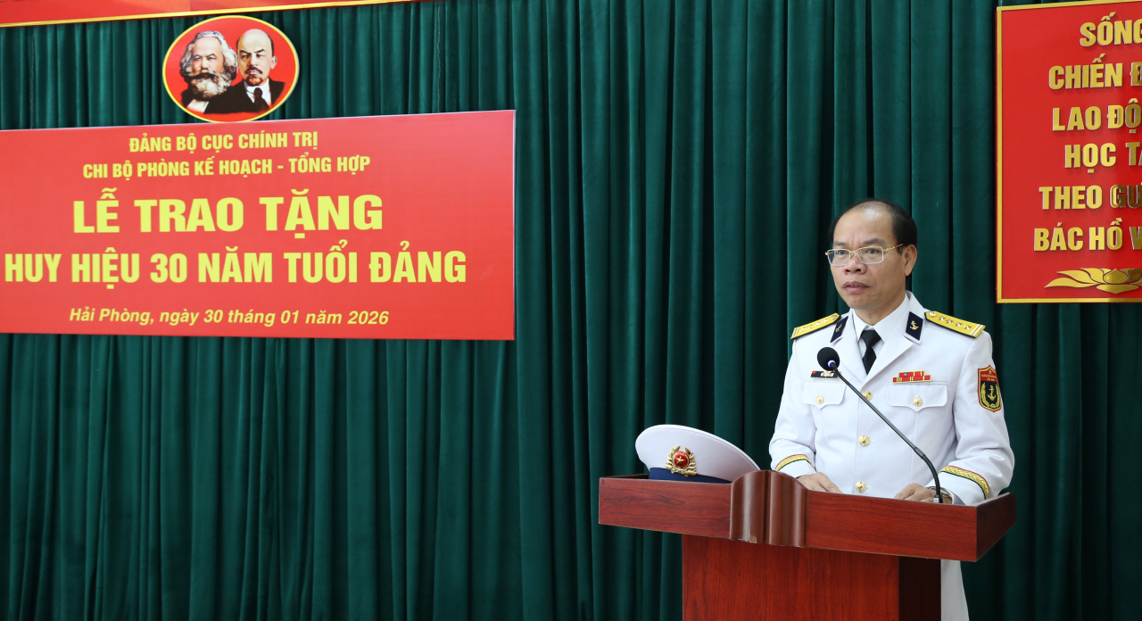 Phát biểu tại buổi lễ, Đại tá Lại Ngọc Tú, đảng ủy viên Đảng ủy Cục Chính trị, Phó Bí thư Chi bộ, Trưởng phòng Kế hoạch-Tổng hợp chúc mừng đồng chí Vũ Trọng Lưu vinh dự được nhận Huy hiệu 30 năm tuổi Đảng đúng vào dịp kỷ niệm 96 Ngày thành lập Đảng Cộng sản Việt Nam và Đại hội đại biểu toàn quốc lần thứ XIV của Đảng vừa diễn ra thành công tốt đẹp.