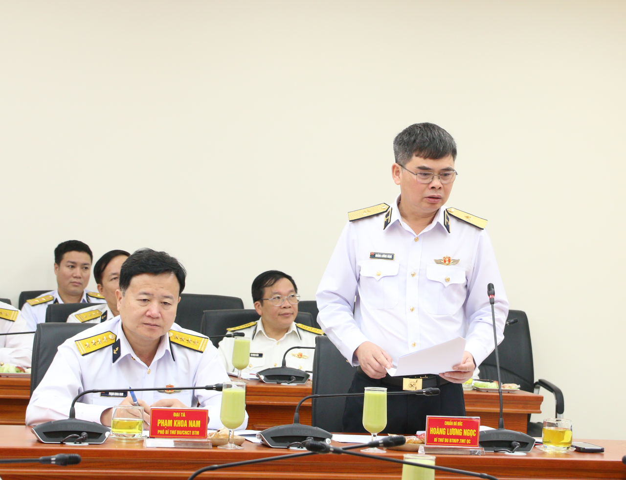 Dự và chỉ đạo buổi sinh hoạt có Chuẩn Đô đốc Hoàng Lương Ngọc, Bí thư Đảng ủy Bộ Tham mưu, Phó Tham mưu trưởng Quân chủng Hải quân.